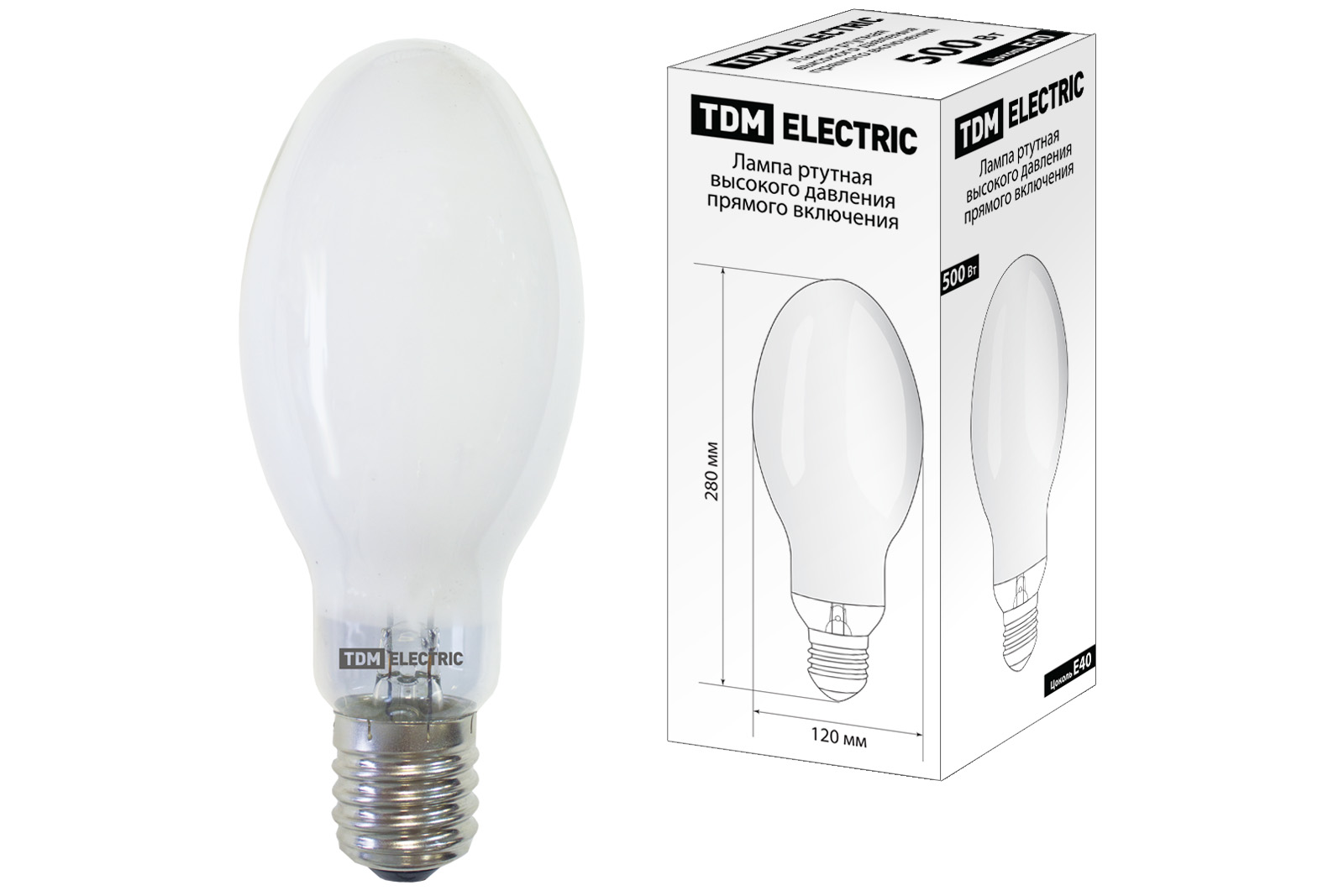 Лампа ртутная высокого давления прямого включения ДРВ 500 Вт Е40 TDM