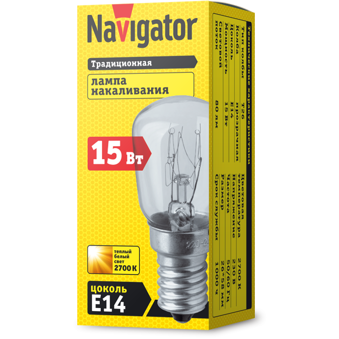 Лампа накаливания 15W Е14 230В Navigator доступен в интернет‑магазине ВольтМаркет в Оренбурге. Покупая у нас, вы получаете дополнительные преимущества:
