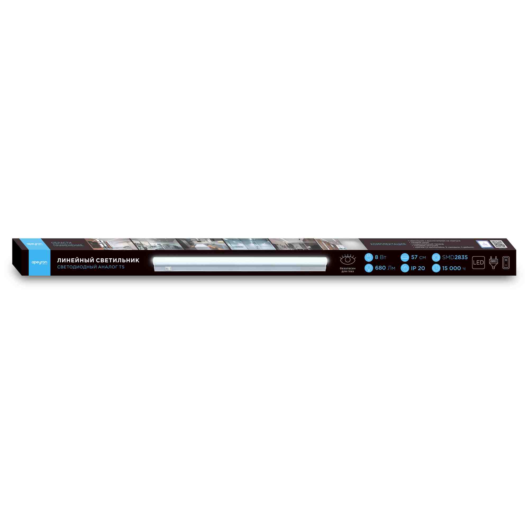 14-52 Светильник светодиодный аналог Т5, 8Вт, IP20, 680Лм, 6500К, 220В/50Гц, белый, поликарбонат, 570х22.6х35мм APEYRON доступен в интернет‑магазине ВольтМаркет в Оренбурге. Покупая у нас, вы получаете дополнительные преимущества: