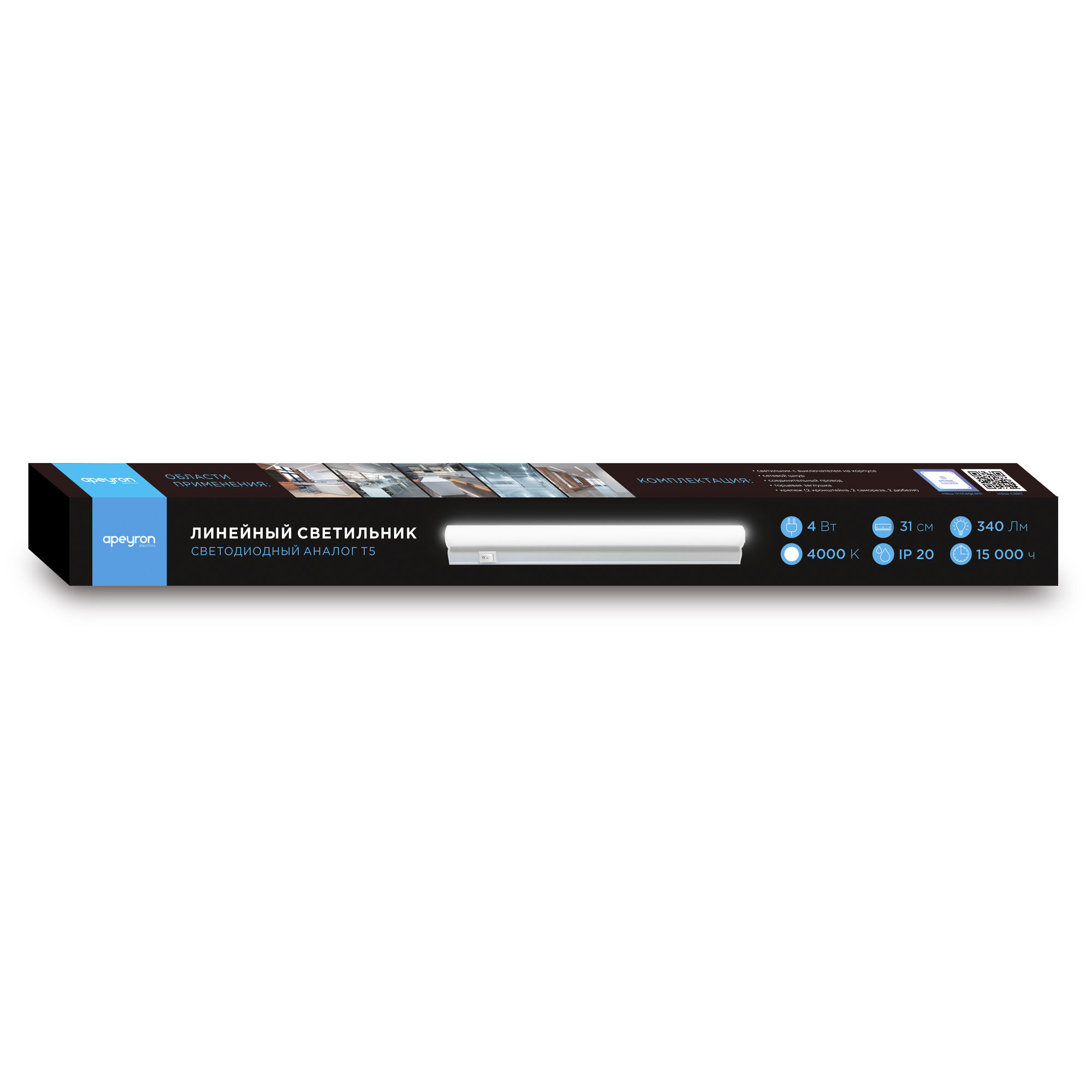14-57 Светильник светодиодный аналог Т5, 4Вт, IP20, 340Лм, 4000К, 220В/50Гц, белый, поликарбонат, 310х22.6х35мм. Apeyron доступен в интернет‑магазине ВольтМаркет. Покупая у нас, вы получаете дополнительные преимущества: