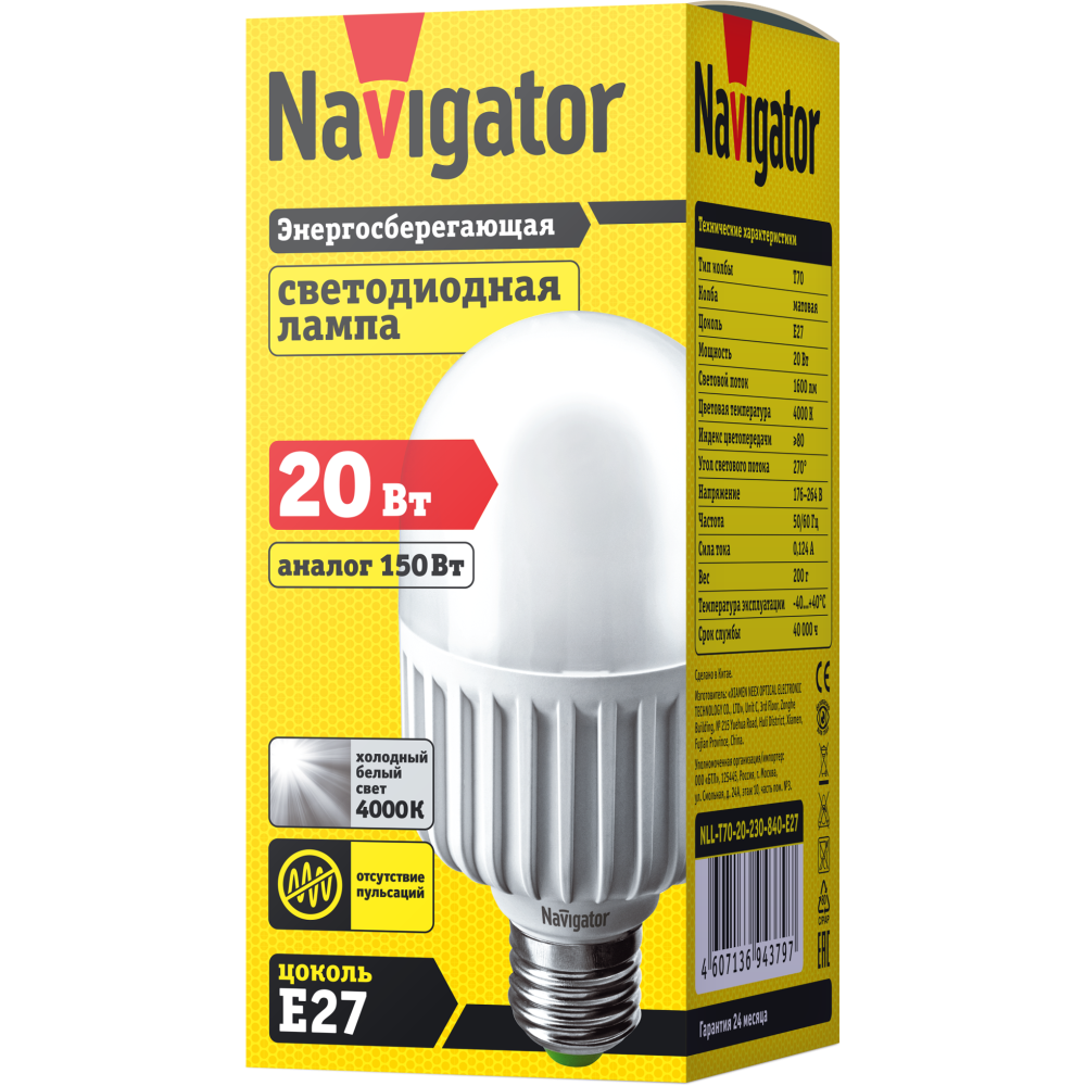 Лампа светодиодная LED 45 Вт Е27 220В Navigator доступен в интернет‑магазине ВольтМаркет. Покупая у нас, вы получаете дополнительные преимущества: