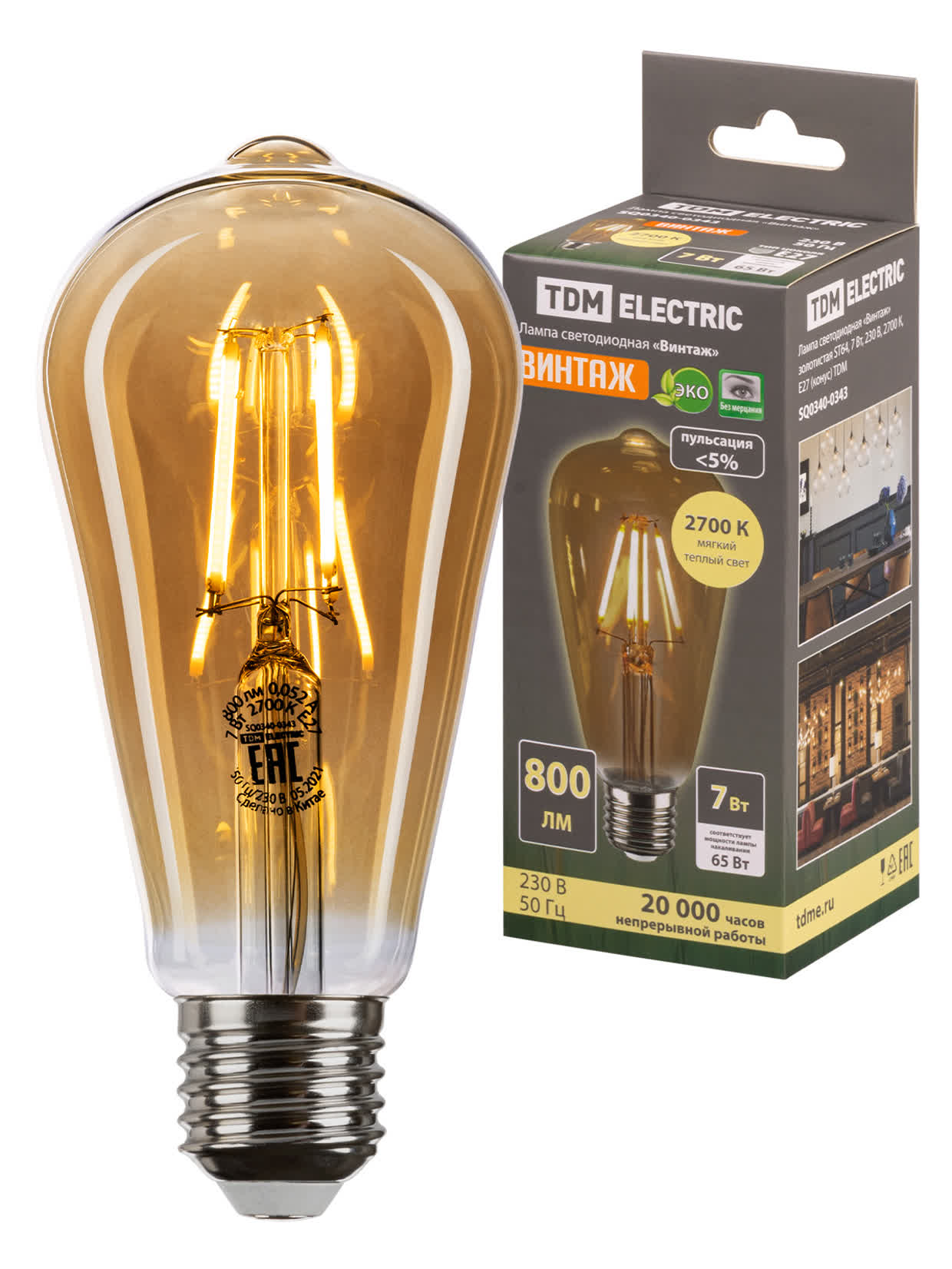 Лампа светодиодная «Винтаж» золотистая ST64, 7 Вт, 230 В, 2700 К, E27 (конус) TDM доступен в интернет‑магазине ВольтМаркет в Оренбурге. Покупая у нас, вы получаете дополнительные преимущества: