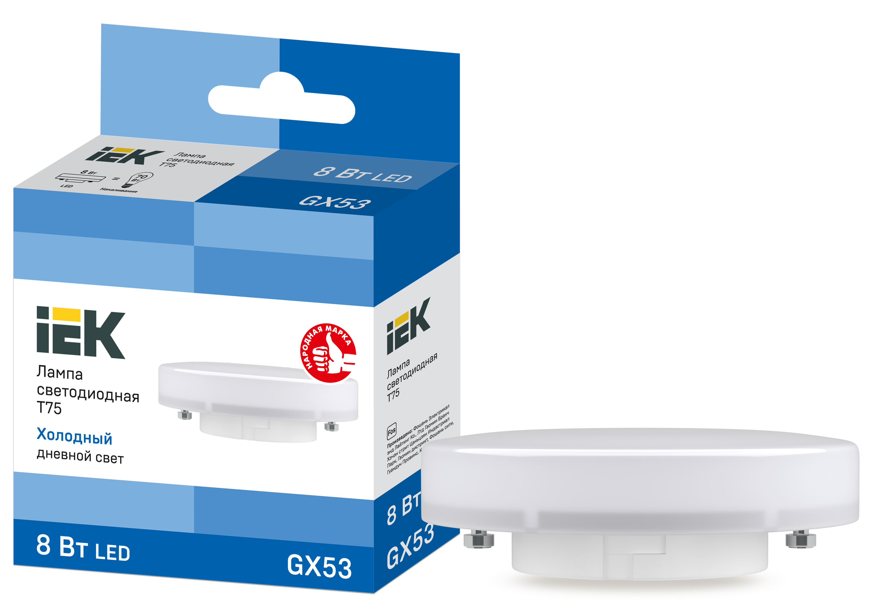 Лампа светодиодная T75 таблетка 8Вт 230В 6500К GX53 IEK