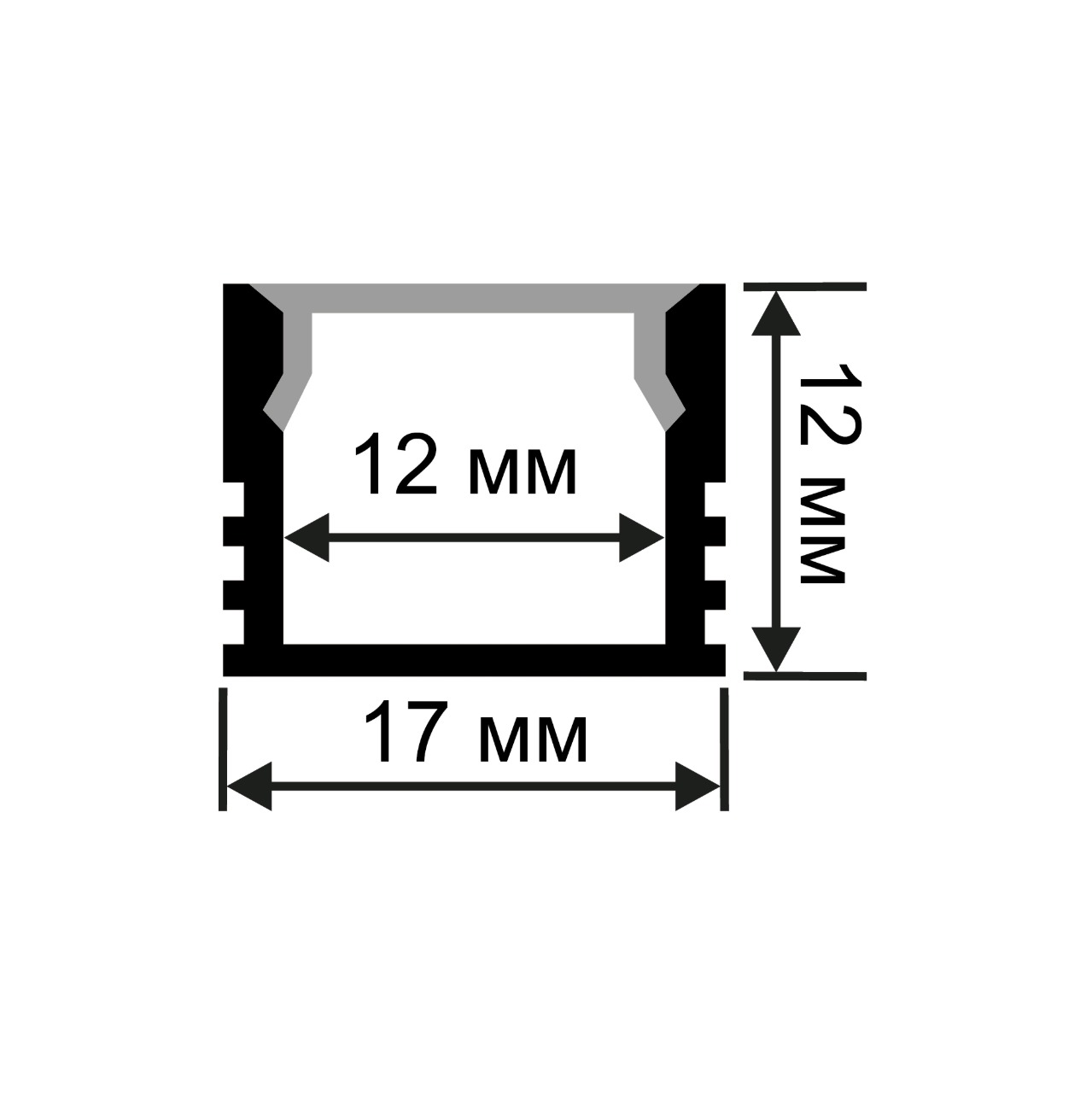 GM-08-10 Профиль алюминиевый для светодиодной ленты, анод., П-образный , накладной, серебро, 17х12мм, 2м, шир. ленты до 12мм, индивидуальная упаковка