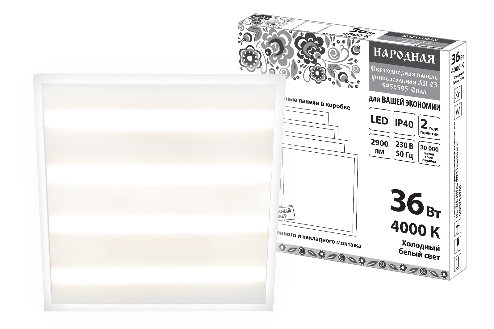 Светодиодная панель универсальная ЛП 03 595х595 Опал 19 мм 36 Вт 2900 Лм, 4000 К, белая, Народная TD доступен в интернет‑магазине ВольтМаркет в Оренбурге. Покупая у нас, вы получаете дополнительные преимущества:
