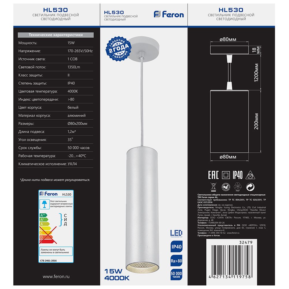 Светодиодный светильник Feron HL530 на подвесе 15W 4000K белый 80*200 доступен в интернет‑магазине ВольтМаркет в Оренбурге. Покупая у нас, вы получаете дополнительные преимущества: