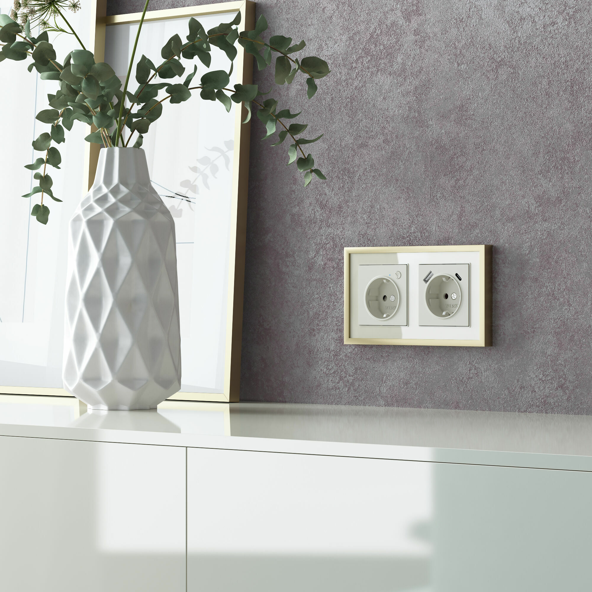 Baguette Рамка на 2 поста (айвори/латунь) Werkel