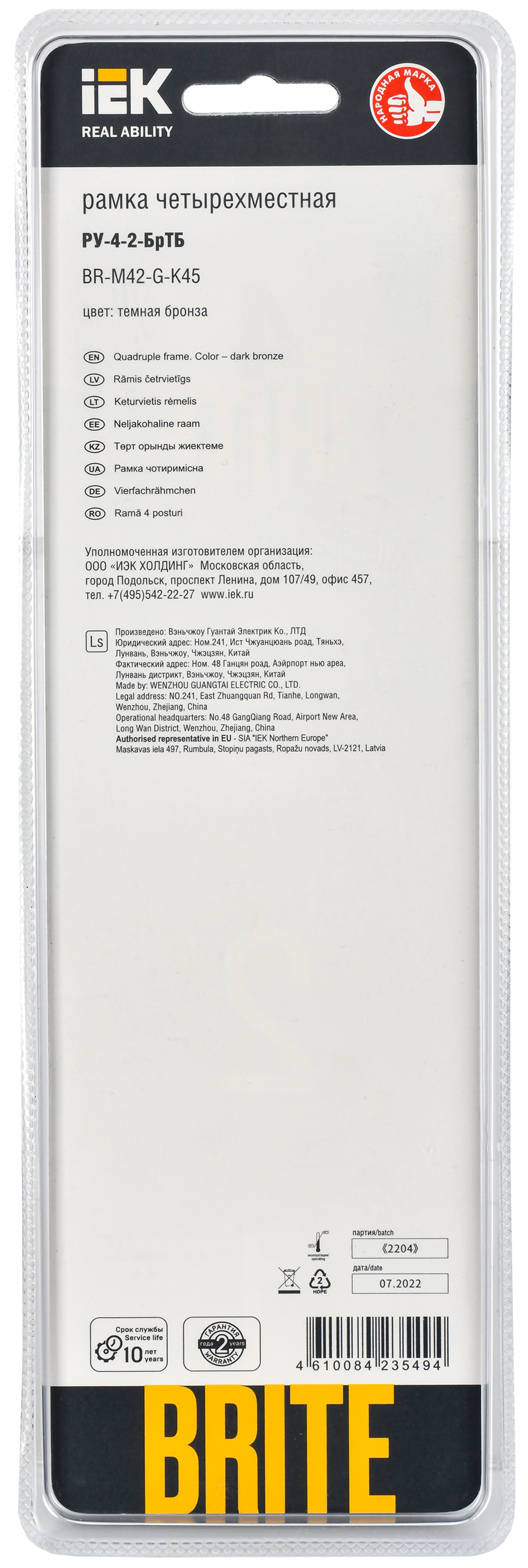 BRITE Рамка 4-мест. РУ-4-2-БрТБ стекло бр. IEK доступен в интернет‑магазине ВольтМаркет. Покупая у нас, вы получаете дополнительные преимущества: