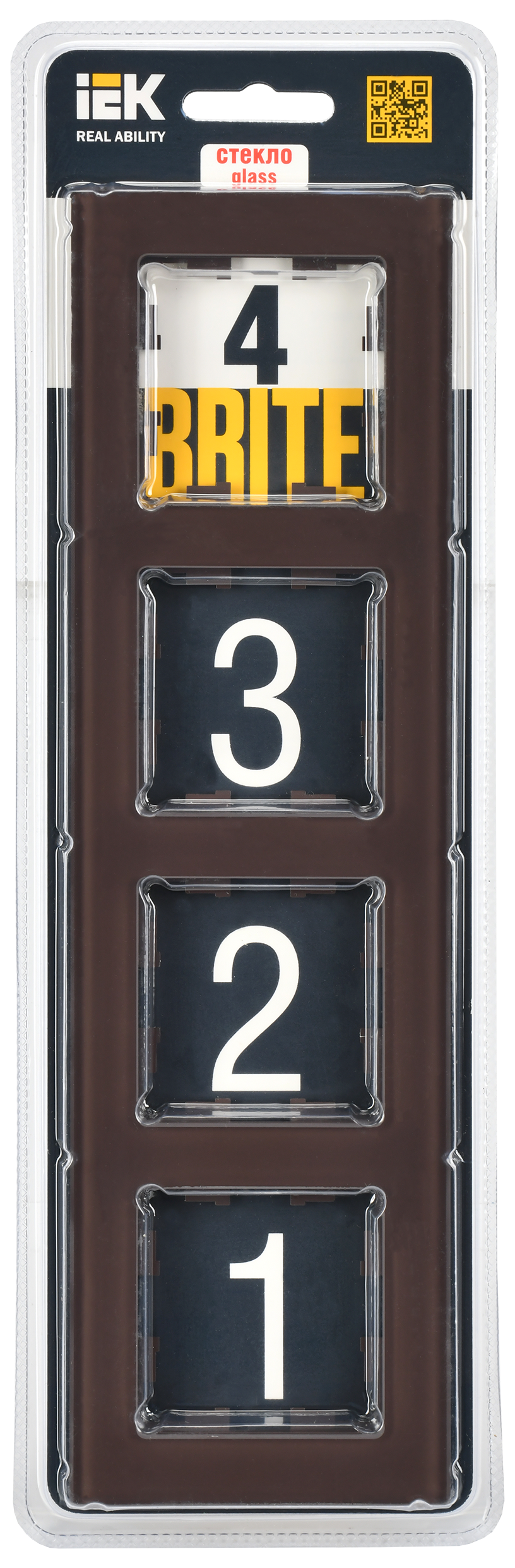 BRITE Рамка 4-мест. РУ-4-2-БрТБ стекло бр. IEK
