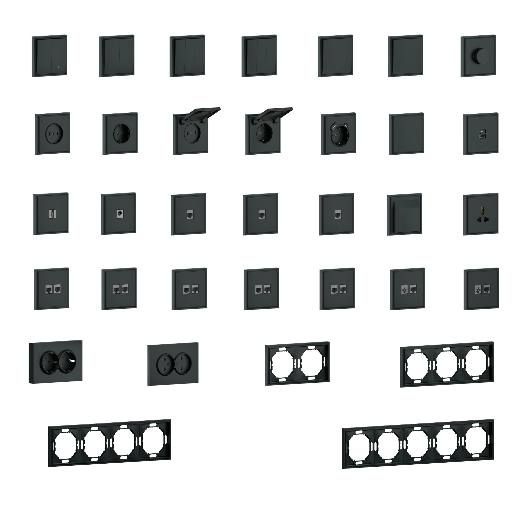 Donel S08 черный графит накладка для розетки Schuko с зарядным устройством USB A+C, со шторками 16A 250 В~,серия DB