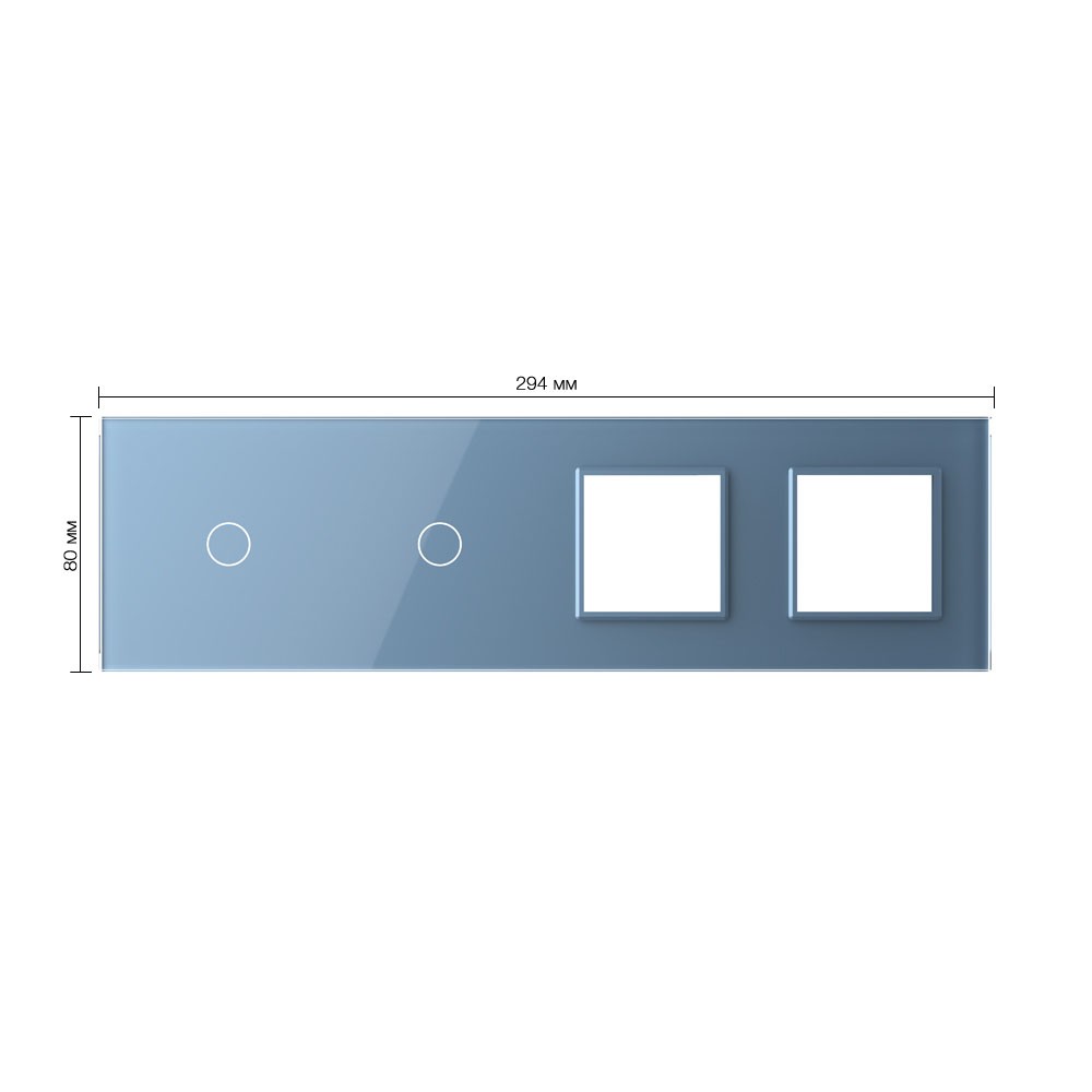 Панель для 2-х сенсорных выключателей и 2-х розеток, 2 клавиши (1+1), цвет синий, стекло Livolo