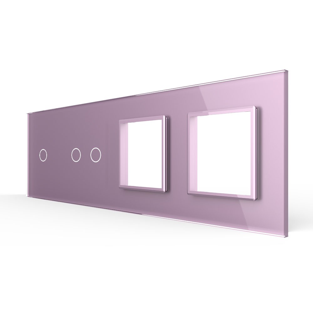 Панель для 2-х сенсорных выключателей и 2-х розеток, 3 клавиши (1+2), цвет розовый, стекло Livolo