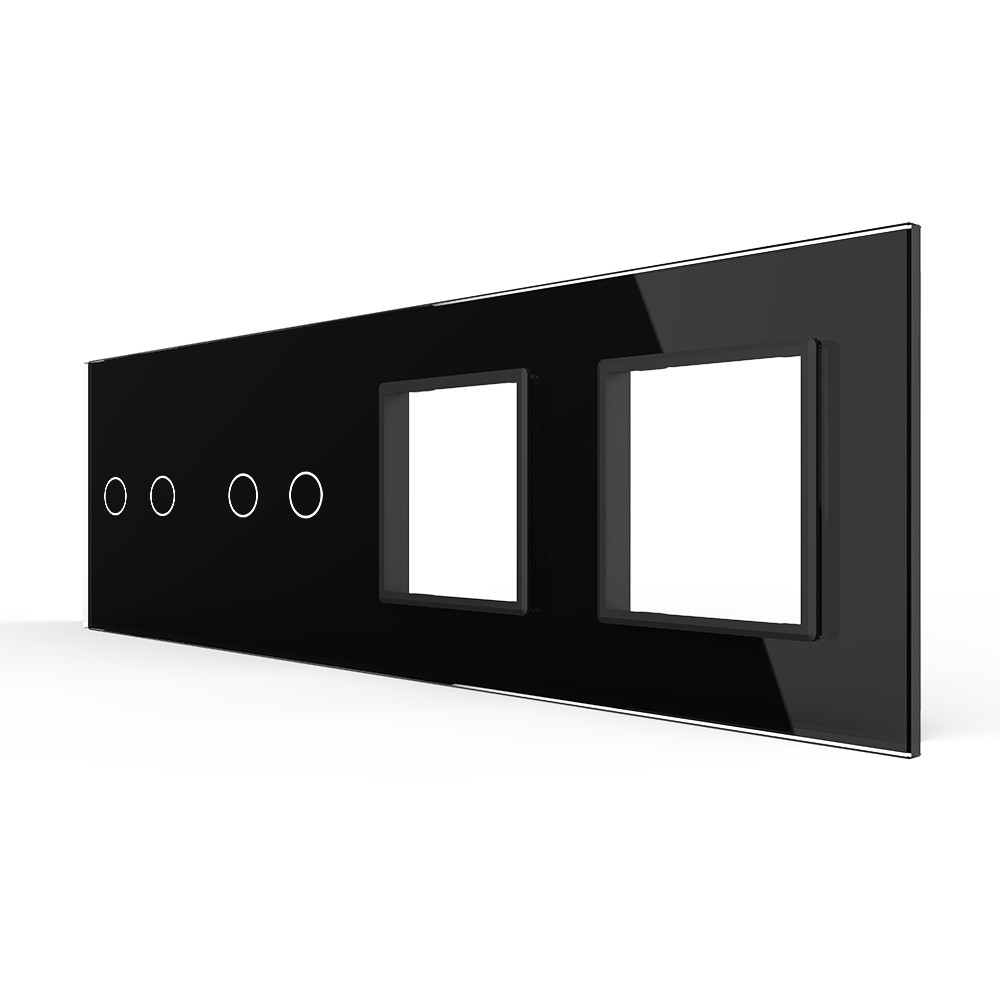 Панель для 2-х сенсорных выключателей и 2-х розеток, 4 клавиши (2+2), цвет черный, стекло Livolo