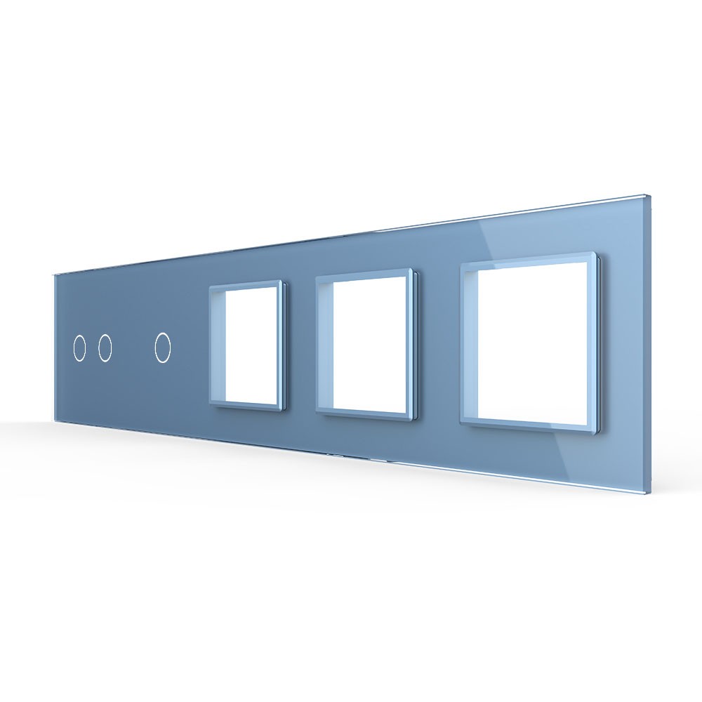Панель для 2-х сенсорных выключателей и 3-х розеток, 3 клавиши (2+1), цвет синий, стекло Livolo