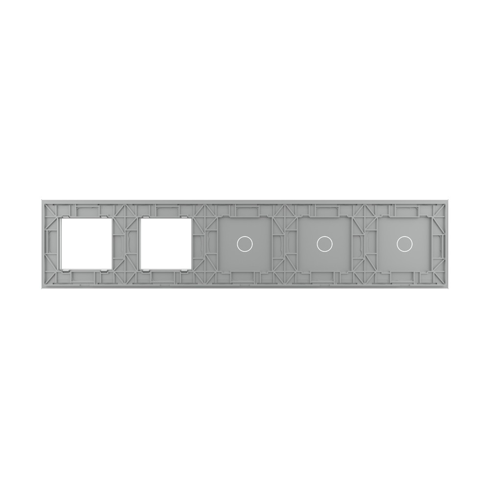Панель для 3-х сенсорных выключателей и 2-х розеток, 3 клавиши (1+1+1), цвет серый, стекло Livolo