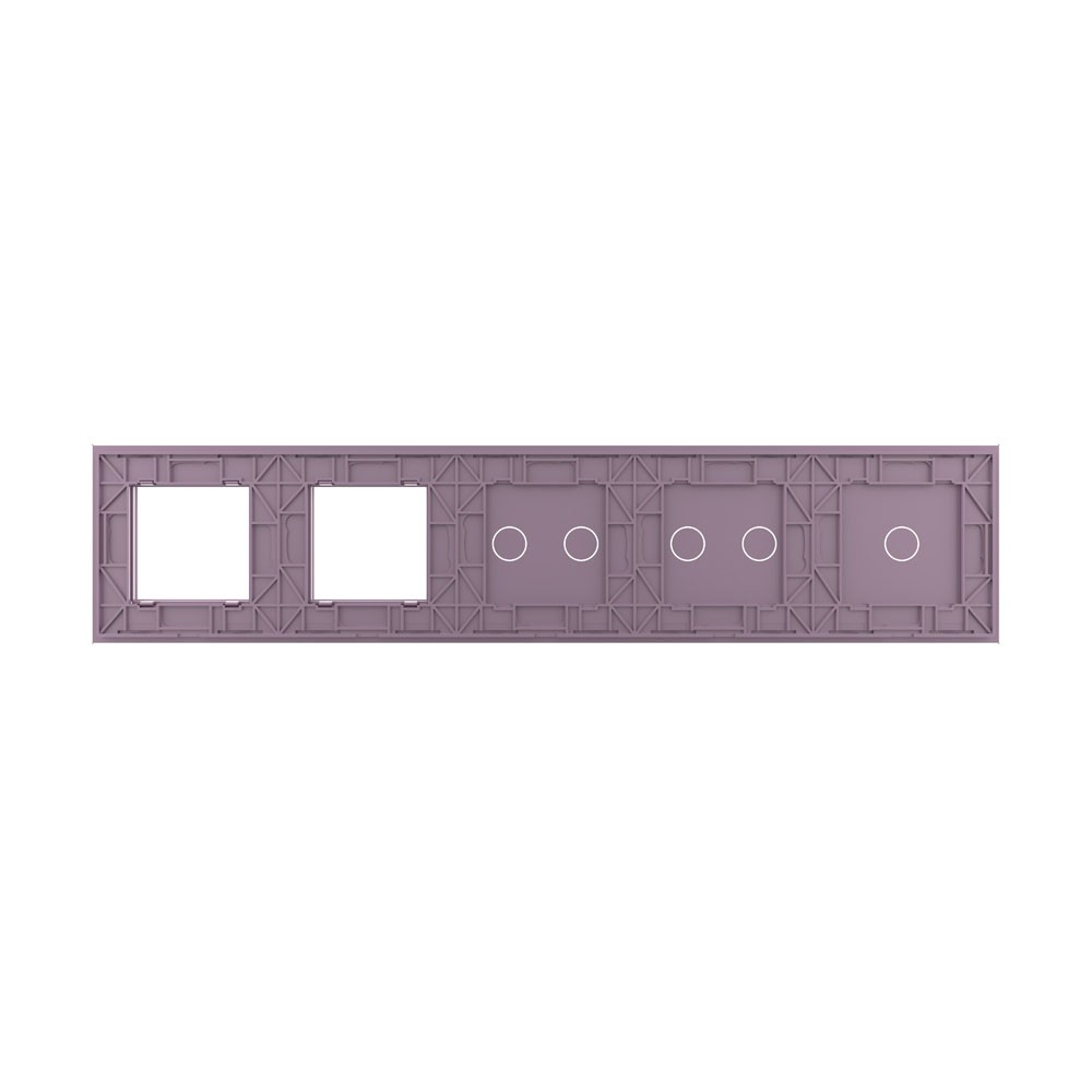 Панель для 3-х сенсорных выключателей и 2-х розеток, 5 клавиш (1+2+2), цвет розовый, стекло Livolo