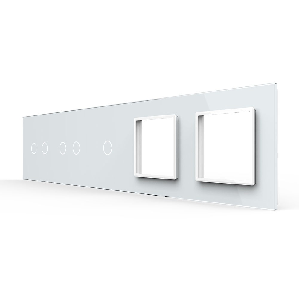 Панель для 3-х сенсорных выключателей и 2-х розеток, 5 клавиш (2+2+1), цвет белый, стекло Livolo