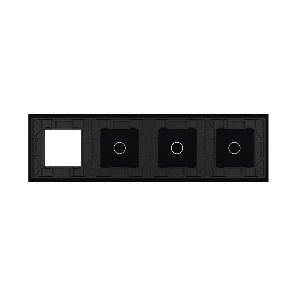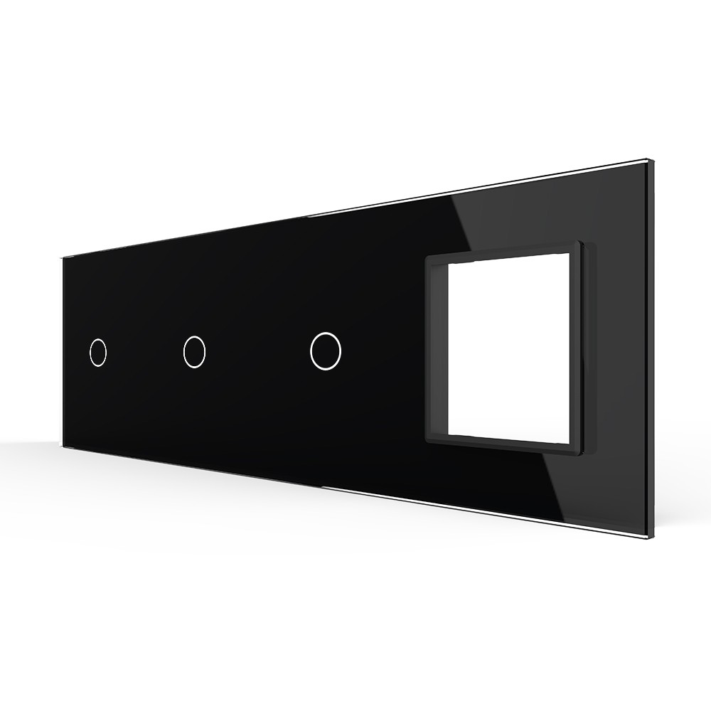 Панель для 3-х сенсорных выключателей и розетки, 3 клавиши (1+1+1), цвет черный, стекло Livolo