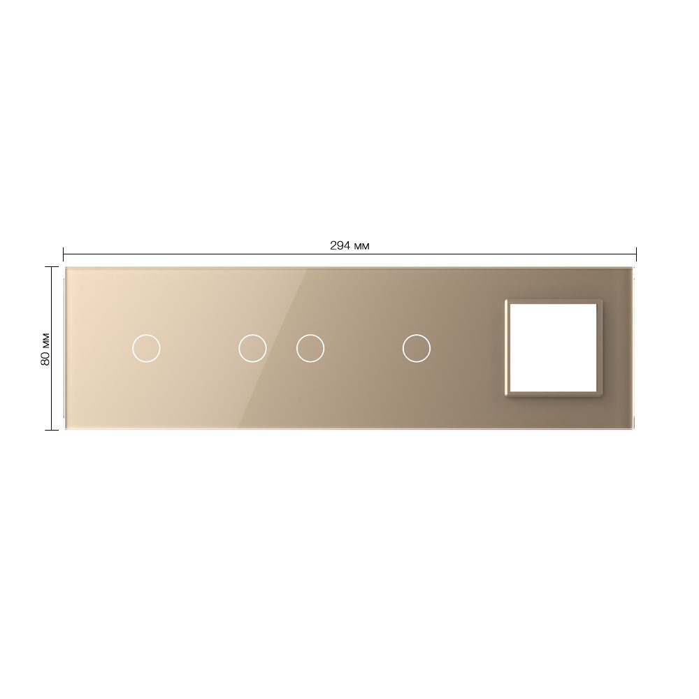 Панель для 3-х сенсорных выключателей и розетки, 4 клавиши (1+2+1), цвет золотой, стекло Livolo