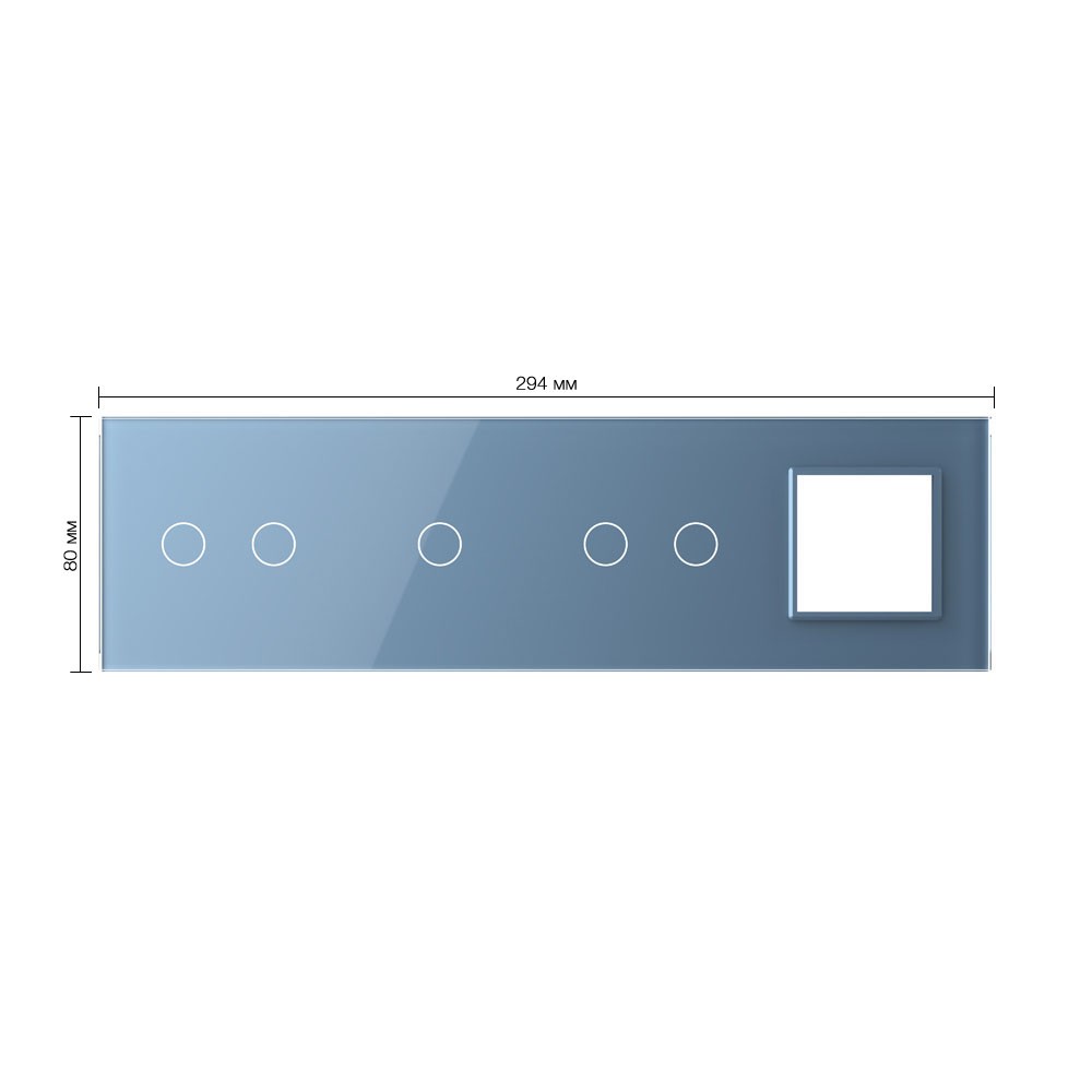 Панель для 3-х сенсорных выключателей и розетки, 5 клавиш (2+1+2), цвет синий, стекло Livolo