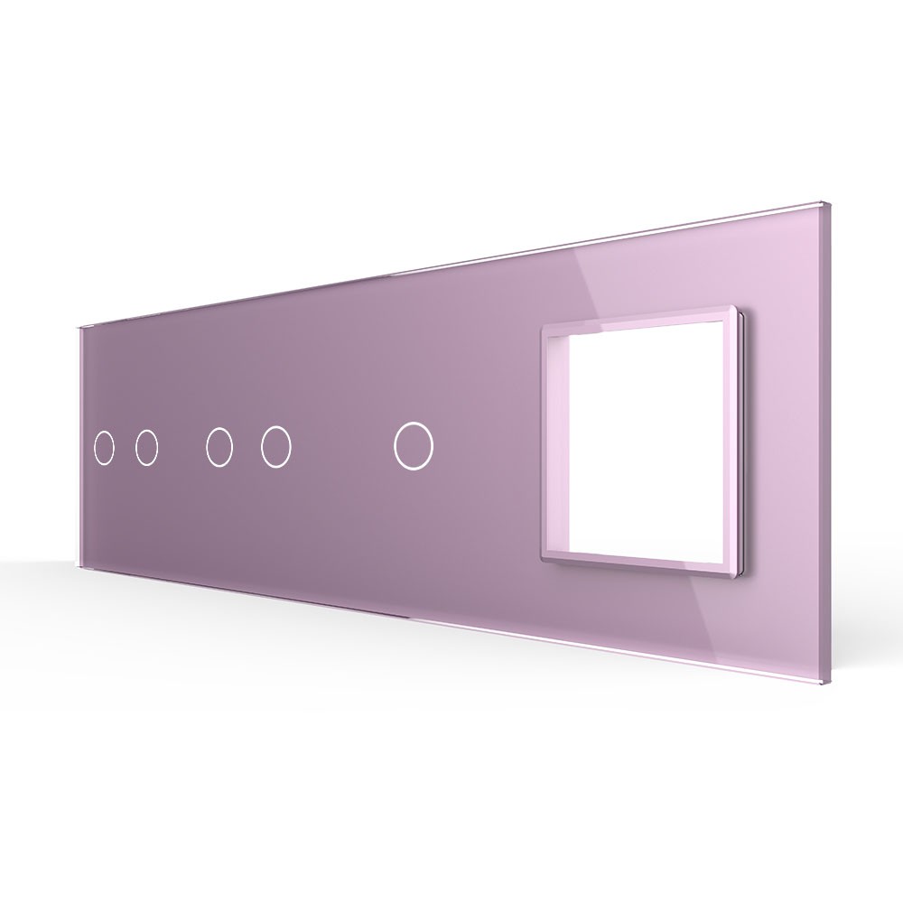 Панель для 3-х сенсорных выключателей и розетки, 5 клавиш (2+2+1), цвет розовый, стекло Livolo