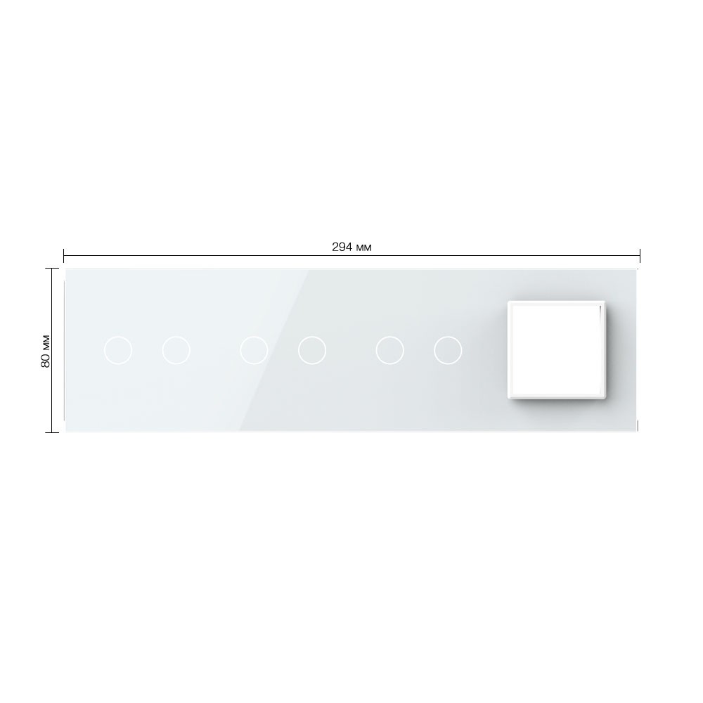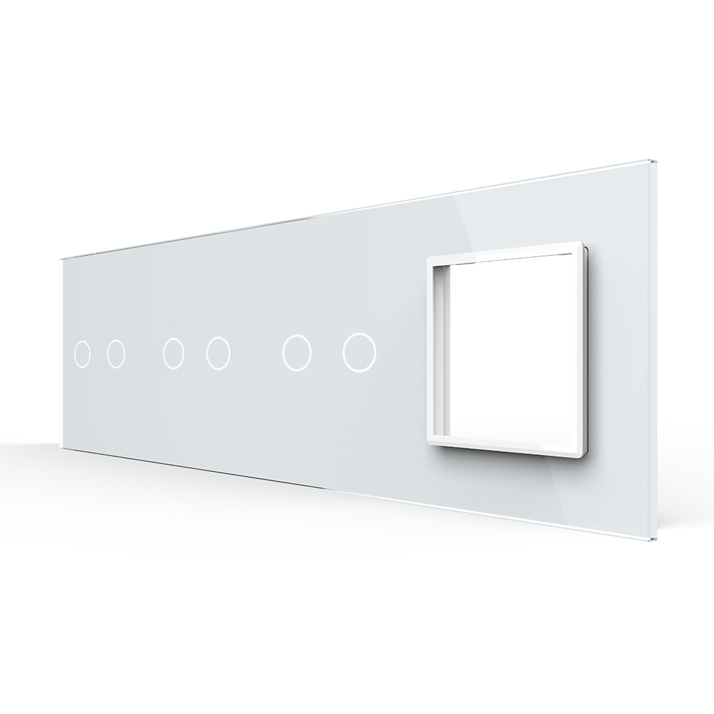 Панель для 3-х сенсорных выключателей и розетки, 6 клавиш (2+2+2), цвет белый, стекло Livolo