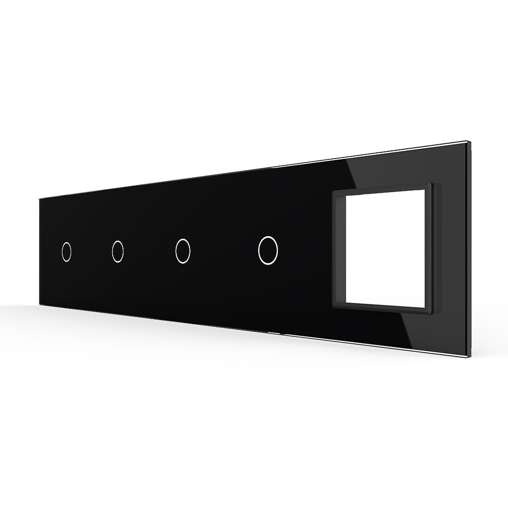 Панель для 4-х сенсорных выключателей и розетки, 4 клавиши (1+1+1+1), цвет черный, стекло Livolo