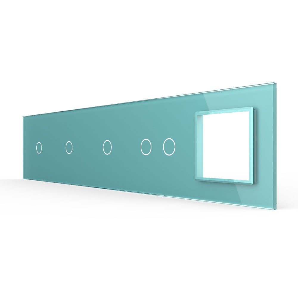 Панель для 4-х сенсорных выключателей и розетки, 5 клавиш (1+1+1+2), цвет зеленый, стекло Livolo