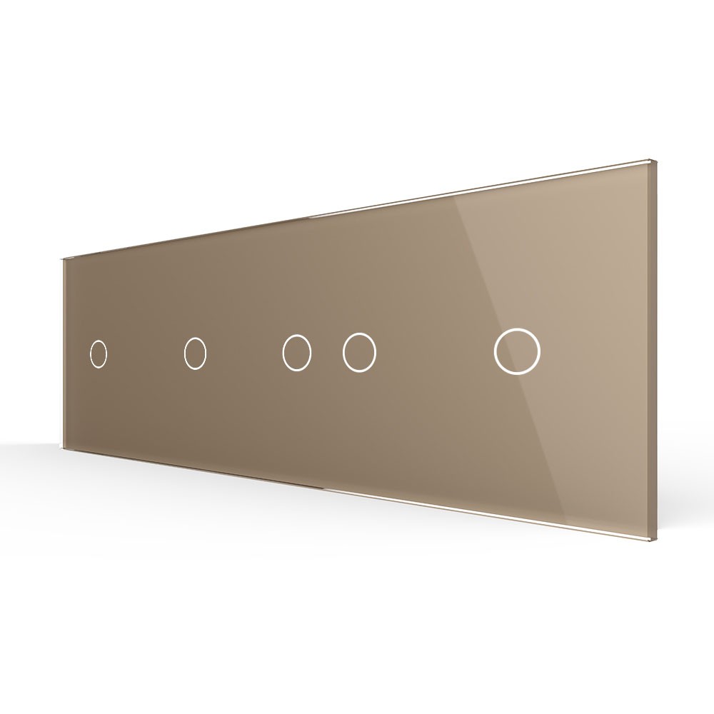 Панель для четырех сенсорных выключателей, 5 клавиш (1+1+2+1), цвет золотой, стекло Livolo
