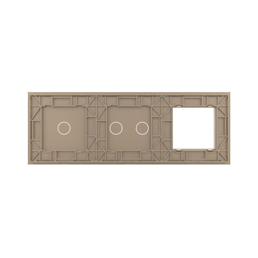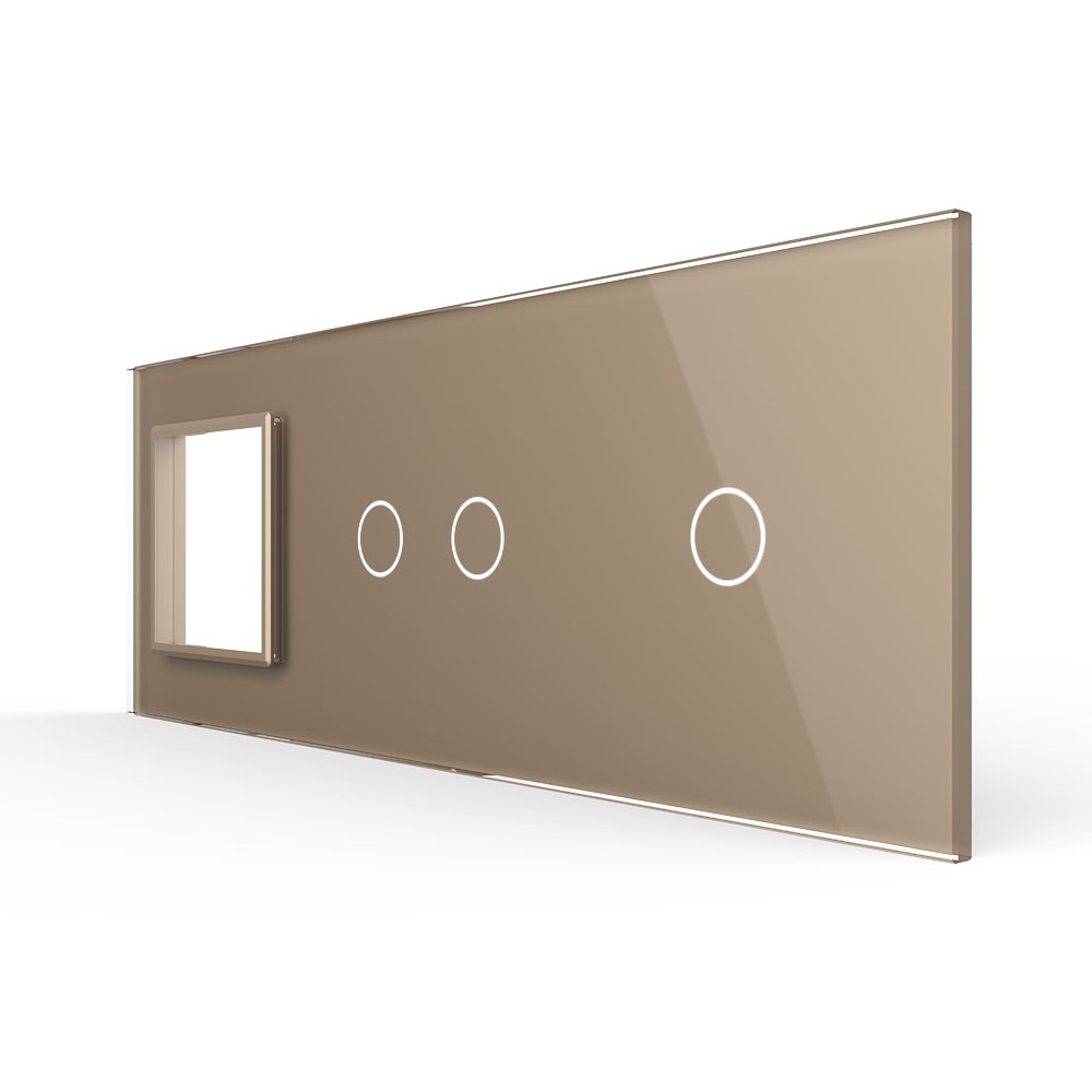 Панель для розетки и двух сенсорных выключателей, 3 клавиши (2+1), цвет золотой, стекло Livolo