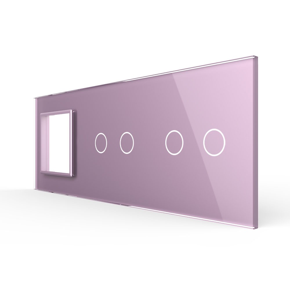 Панель для розетки и двух сенсорных выключателей, 4 клавиши (2+2), цвет розовый, стекло Livolo