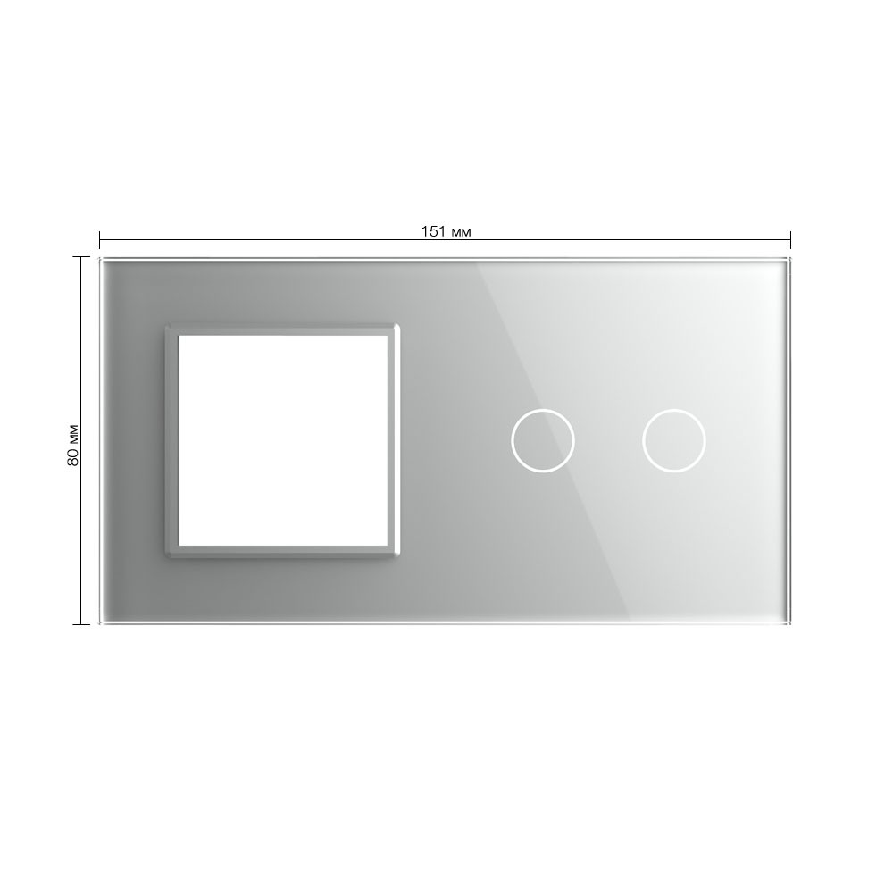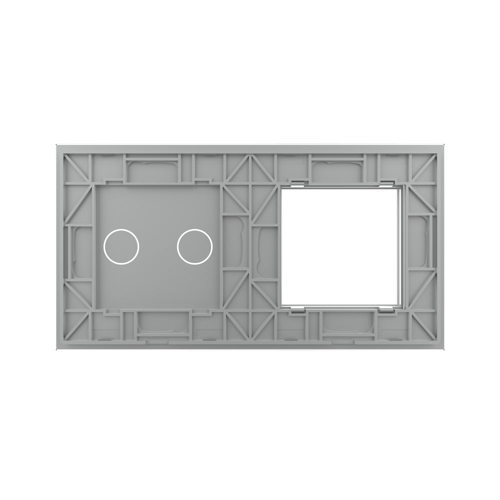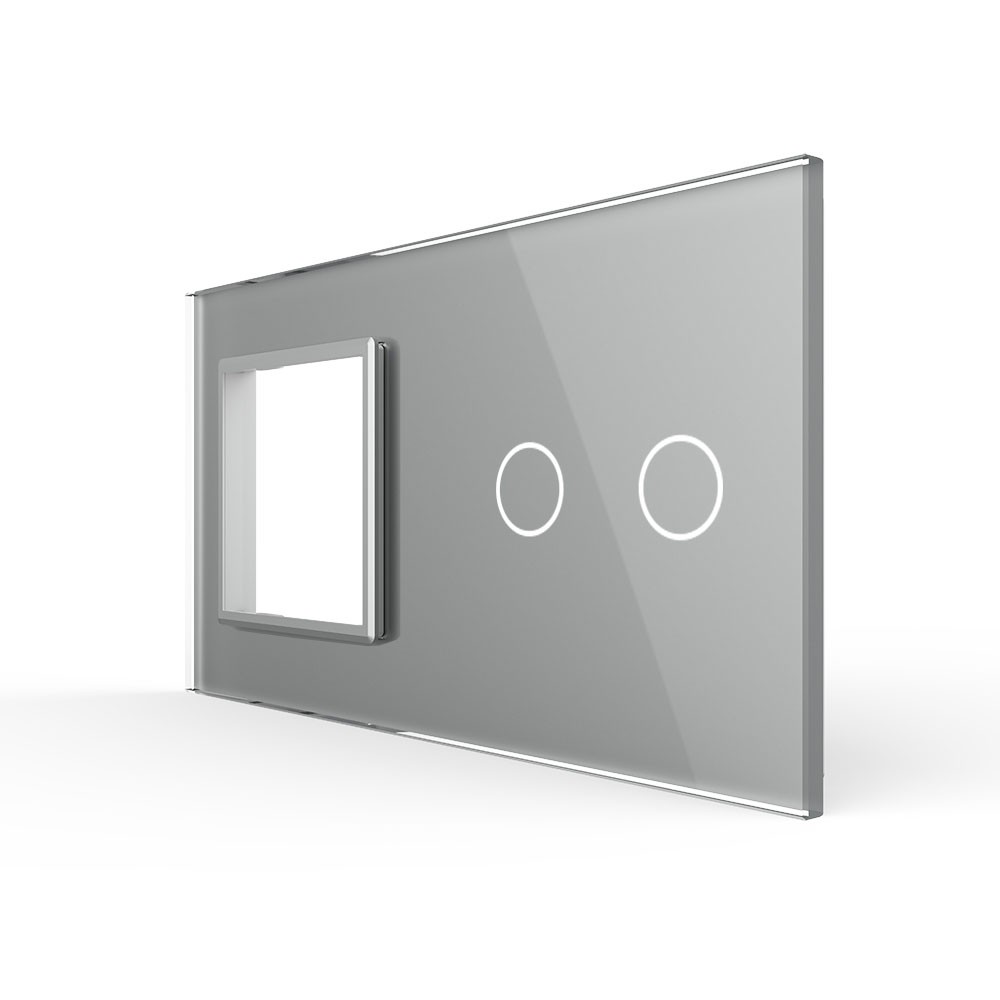 Панель для розетки и сенсорного выключателя, 2 клавиши, цвет серый, стекло Livolo