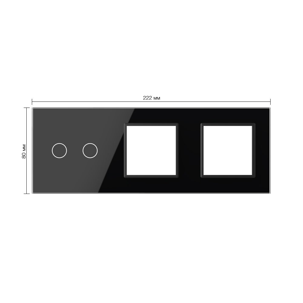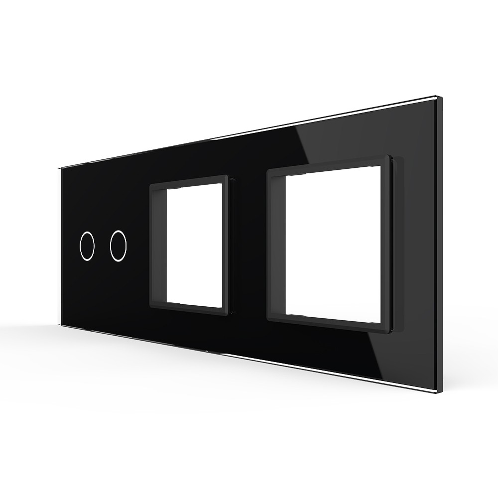 Панель для сенсорного выключателя и двух розеток, 2 клавиши, цвет черный, стекло Livolo