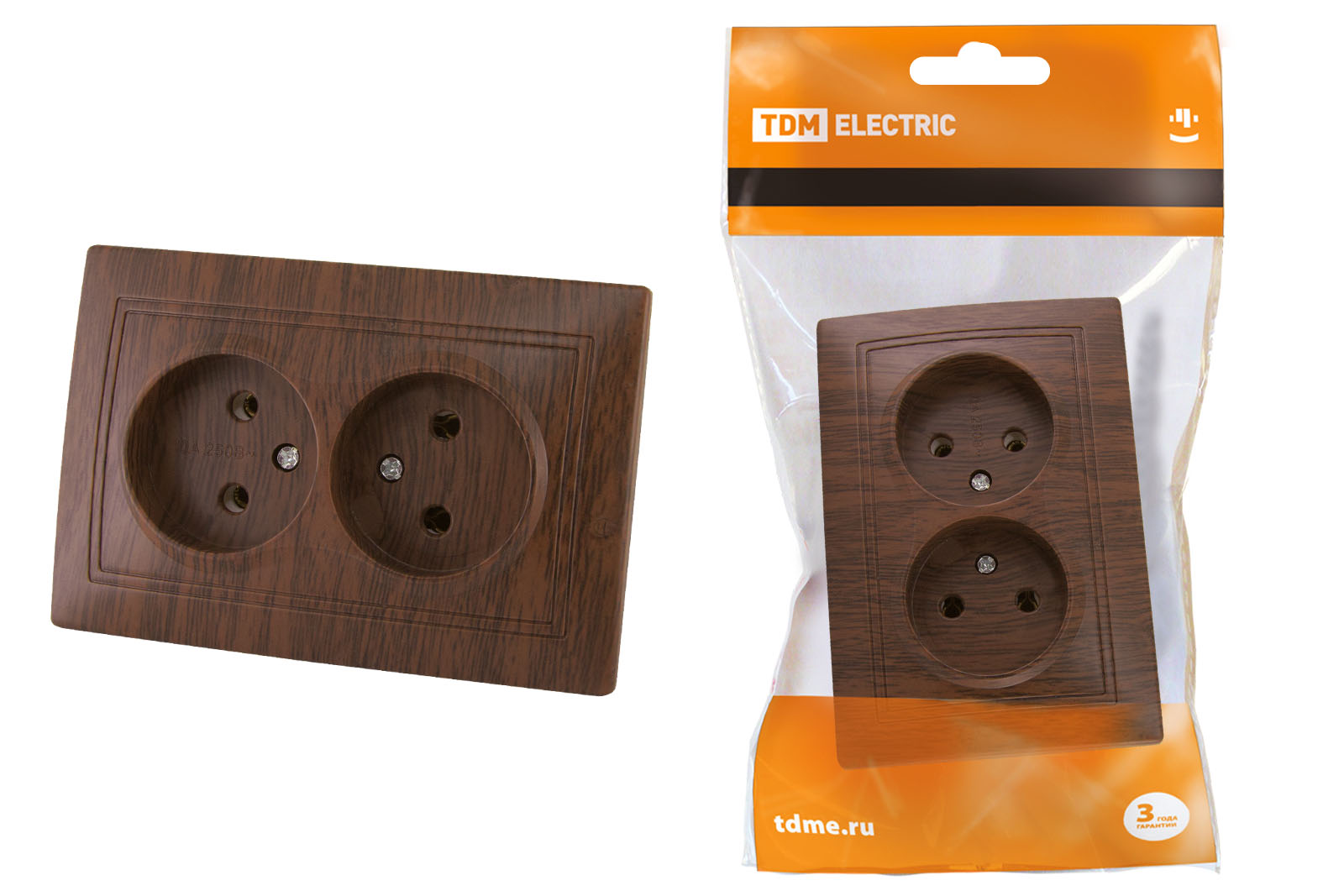 Розетка двойная 2П 10А 250В "ЭКО" (бук) "Таймыр" TDM