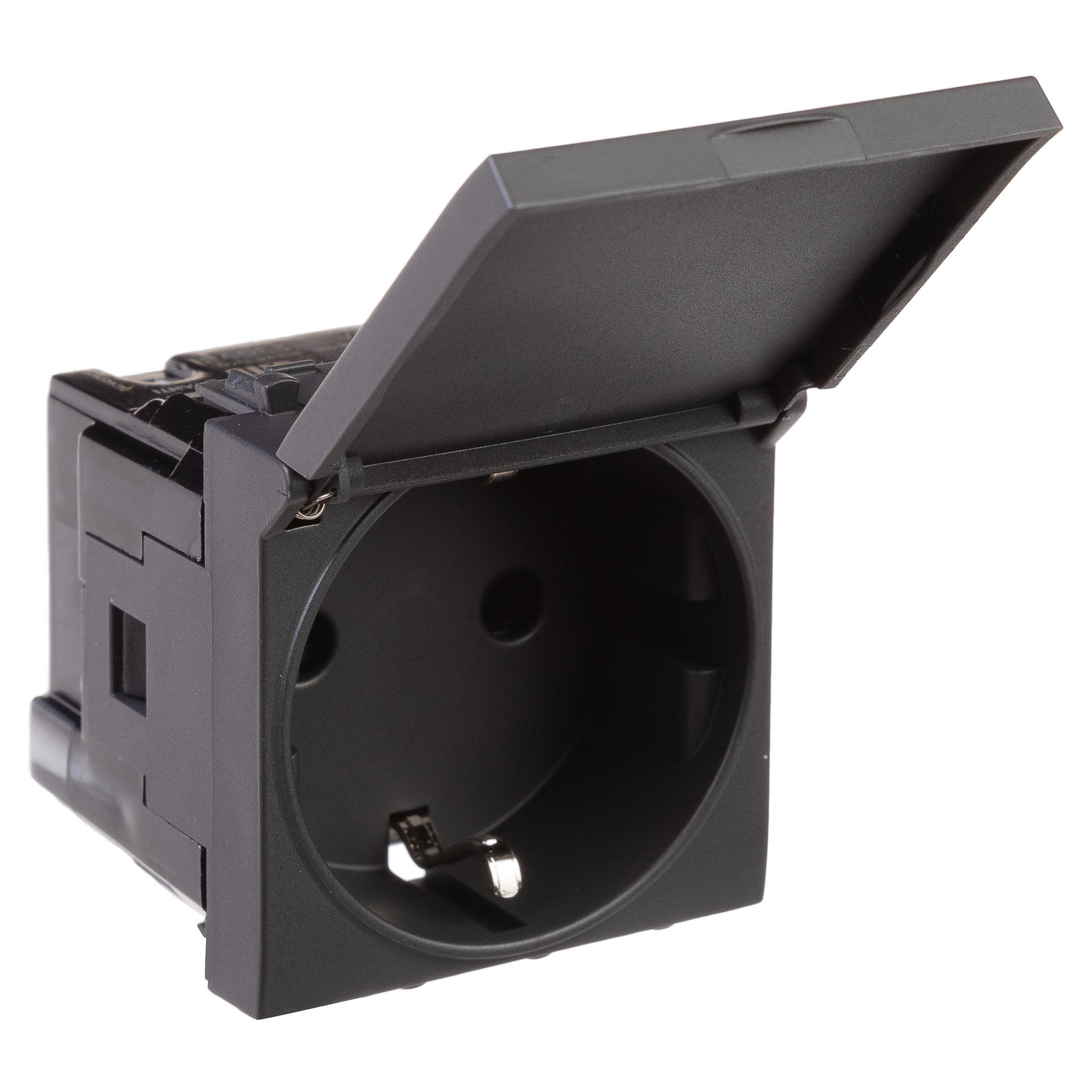 Розетка с крышкой модульная, 2P+E, с з/ш, "Avanti", "Черный матовый", 2модуля DKC