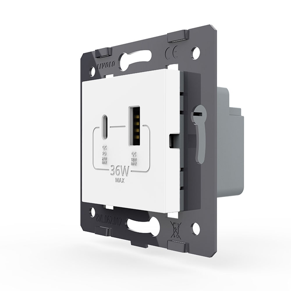 Розетка USB type C+A с блоком питания 36W, цвет белый (механизм) Livolo