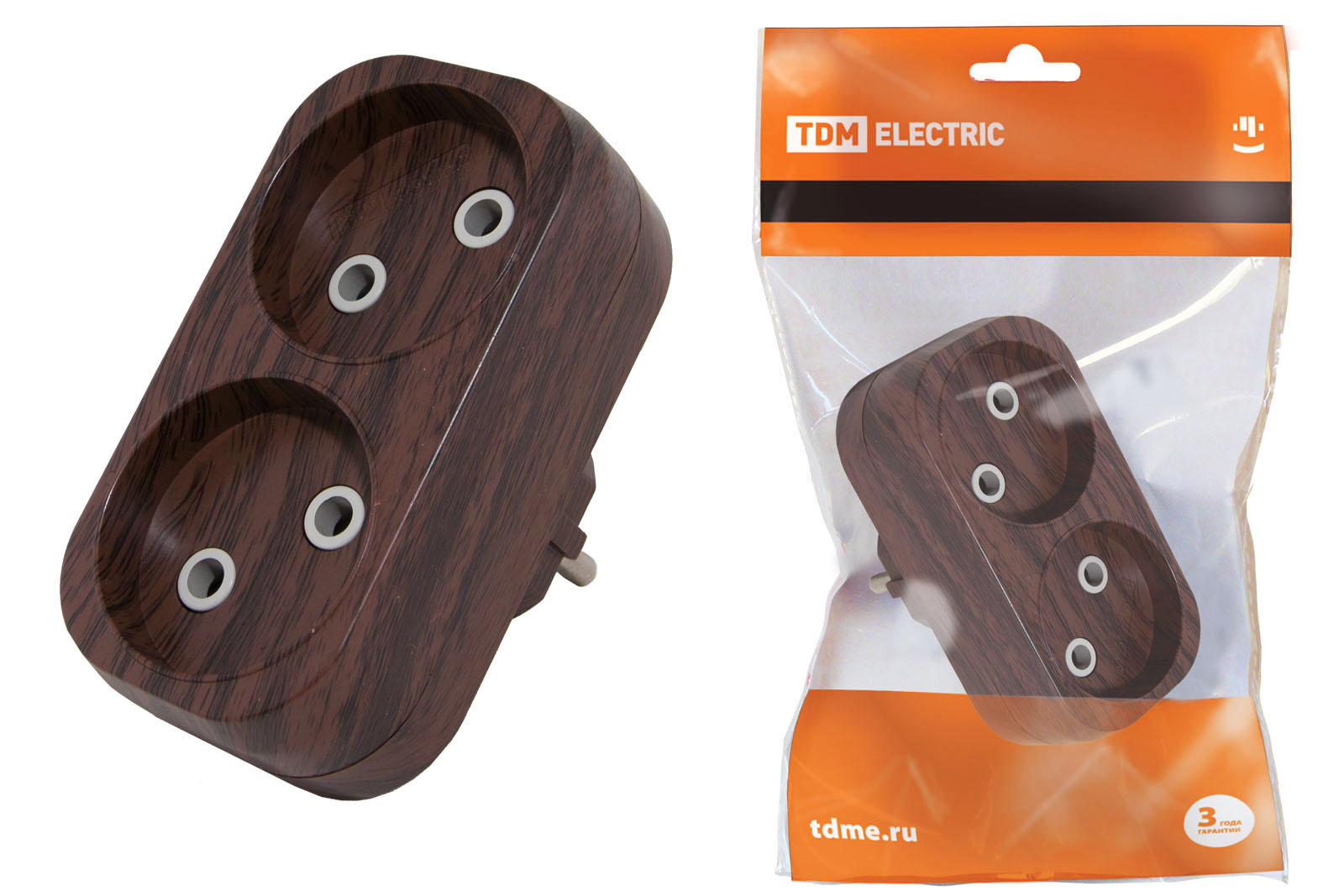 Блок на 2 гнезда 2П б/з плоский 6А 250B "Эко" (бук) TDM