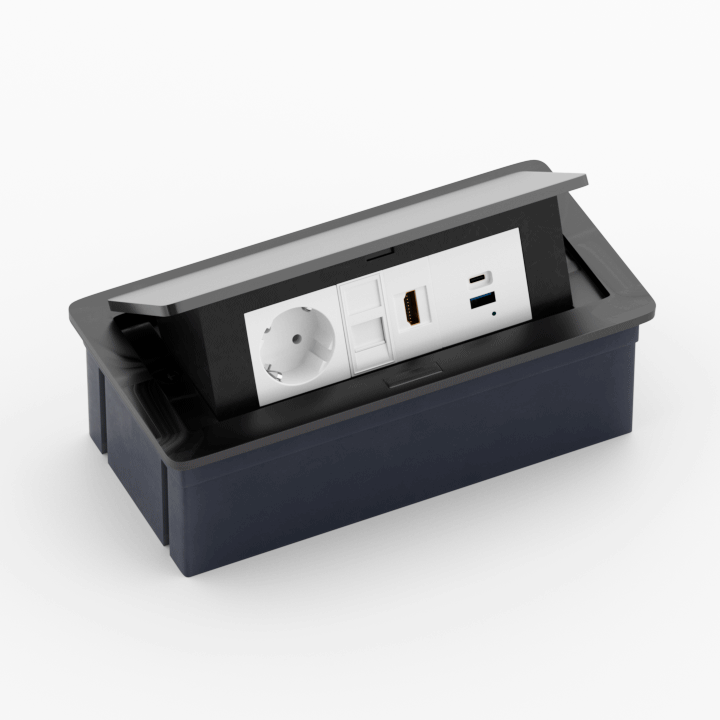 Donel Настольный встраиваемый выдвижной розеточный блок 6 мод. (3 мод. 45х45), черный