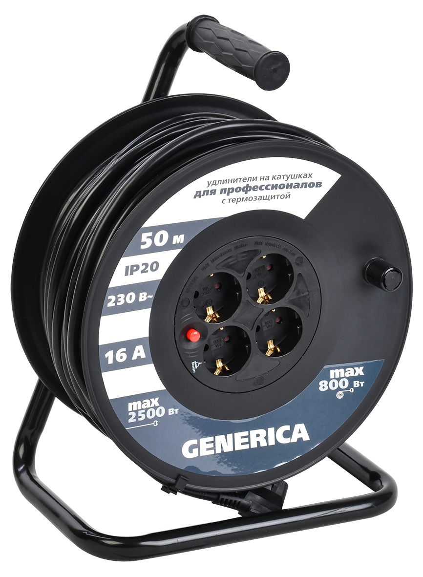 Катушка УК50 с термозащитой 4 места 2P+PE/50м 3х1,5мм2 GENERICA доступен в интернет‑магазине ВольтМаркет. Покупая у нас, вы получаете дополнительные преимущества: