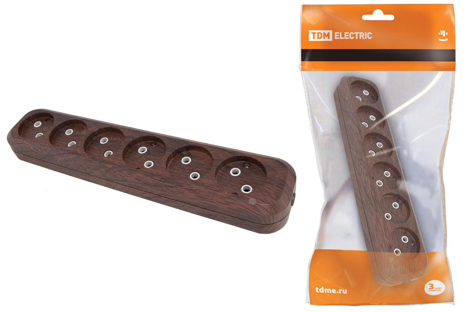 Колодка розеточная 6 гнезд 2П б/з 10А 250В "Эко" (бук) TDM