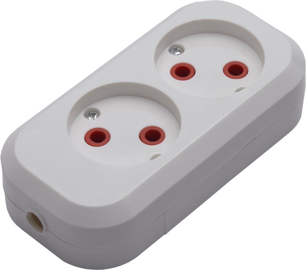 Розетка переносная разборная 2-местная б/з STEKKER, PST10-200-20, 250В, 10A, IP20,белый
