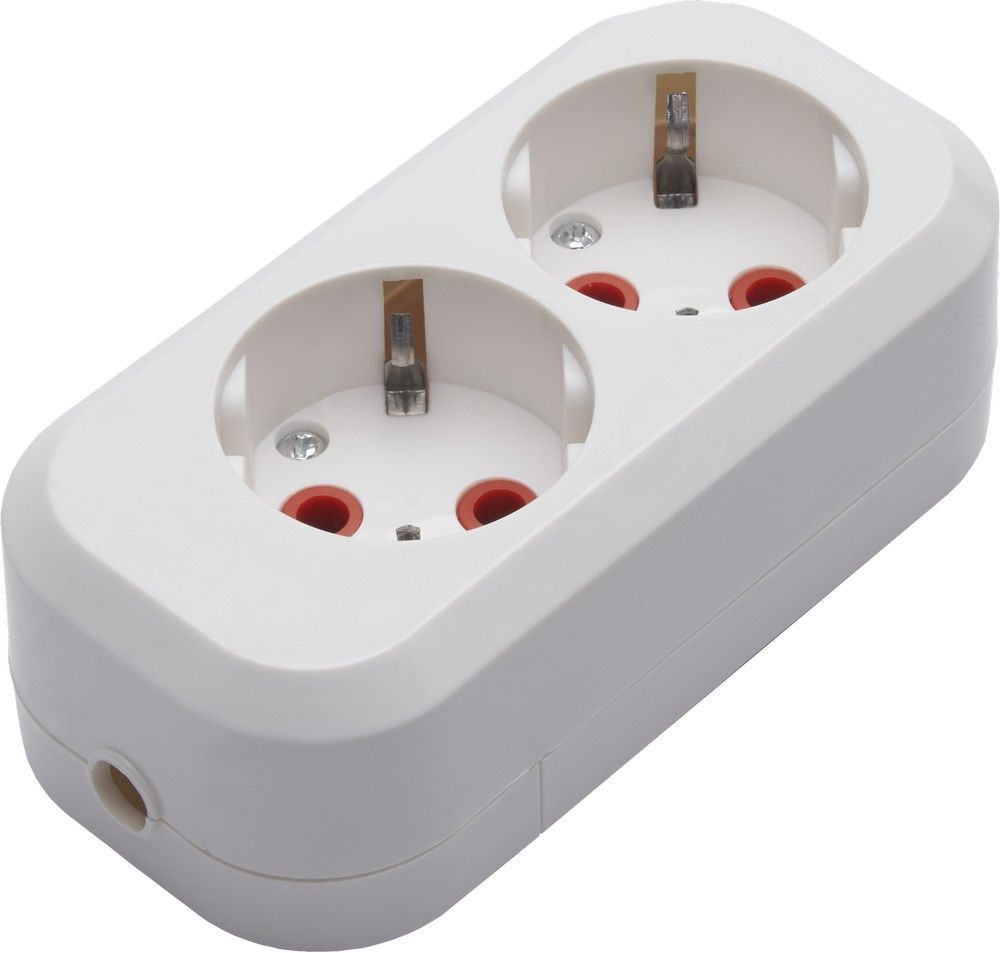 Розетка переносная разборная 2-местная с/з STEKKER, PST16-210-20, 250В, 16A, IP20, белый