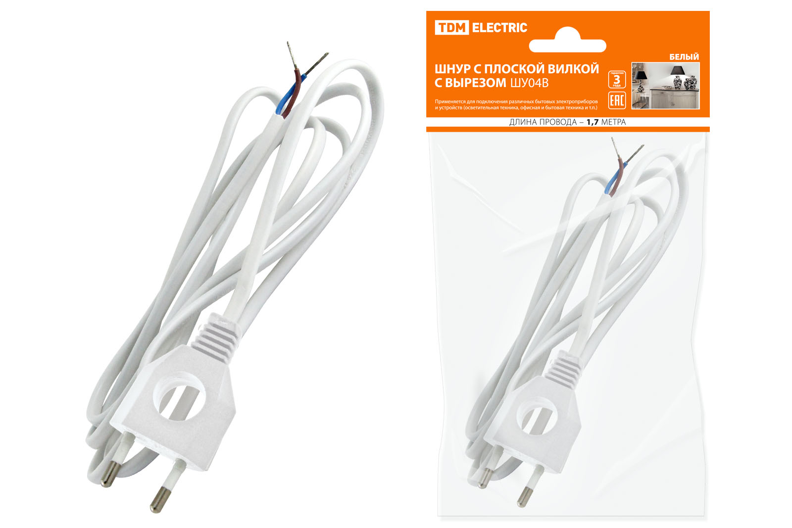 Шнур с плоской вилкой с вырезом ШУ04 ШВВП 2х0,75мм2 1,7 м. белый TDM доступен в интернет‑магазине ВольтМаркет. Покупая у нас, вы получаете дополнительные преимущества:
