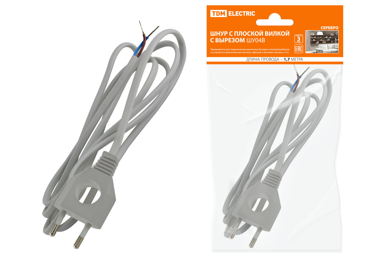 Шнур с плоской вилкой с вырезом ШУ04 ШВВП 2х0,75мм2 1,7 м. серебр. металлик TDM доступен в интернет‑магазине ВольтМаркет. Покупая у нас, вы получаете дополнительные преимущества: