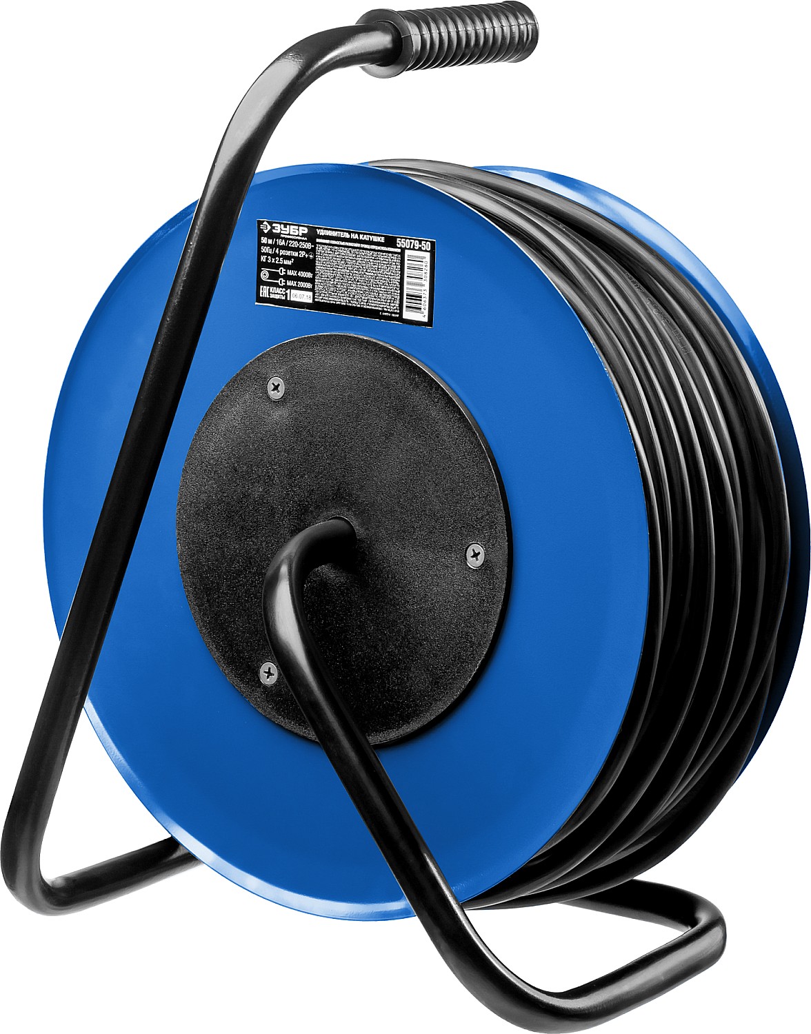 Силовой удлинитель на стальной катушке КГ 3х2.5 50м 4000Вт IP44, КГ 325 ЗУБР