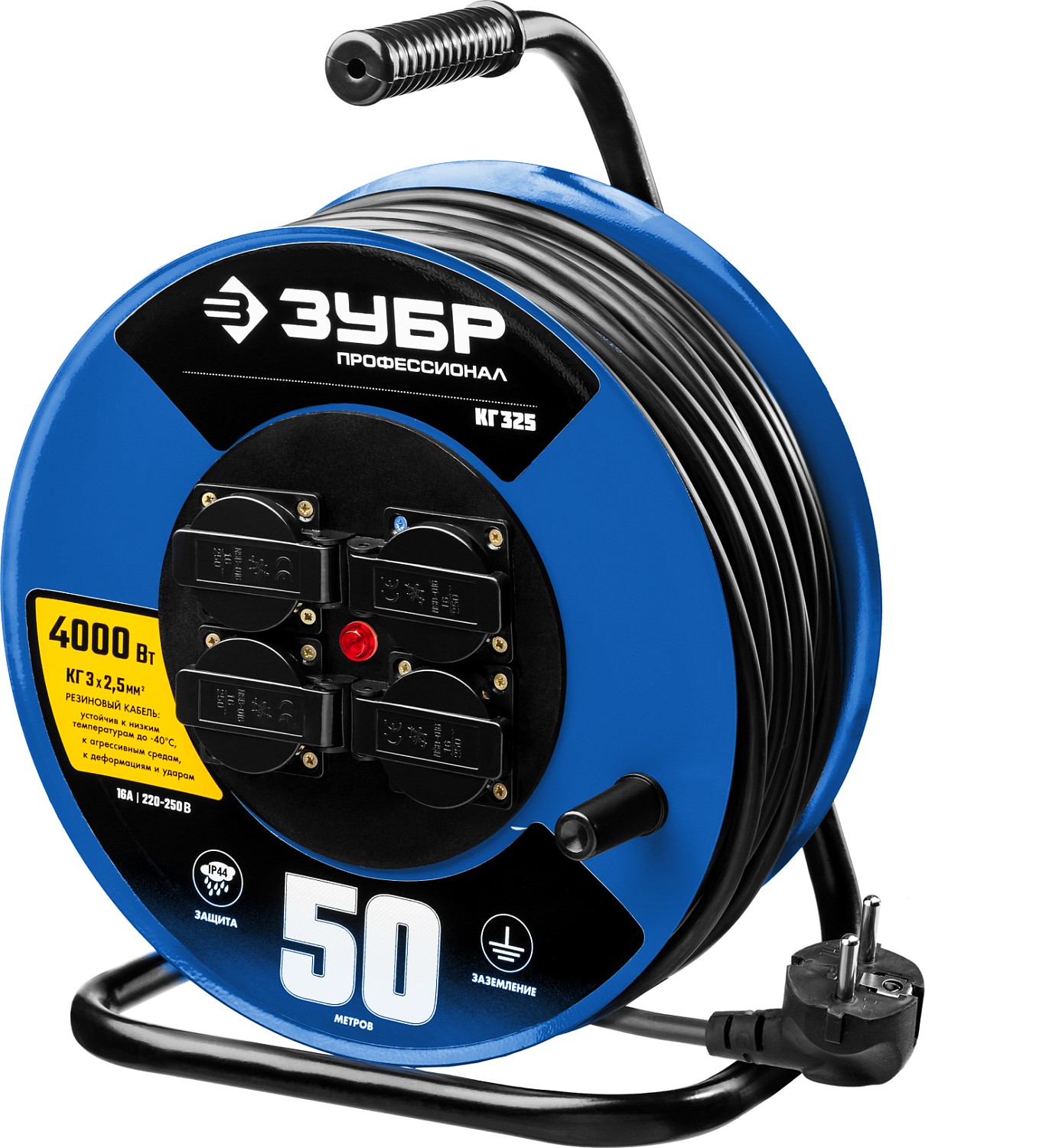 Силовой удлинитель на стальной катушке КГ 3х2.5 50м 4000Вт IP44, КГ 325 ЗУБР доступен в интернет‑магазине ВольтМаркет. Покупая у нас, вы получаете дополнительные преимущества: