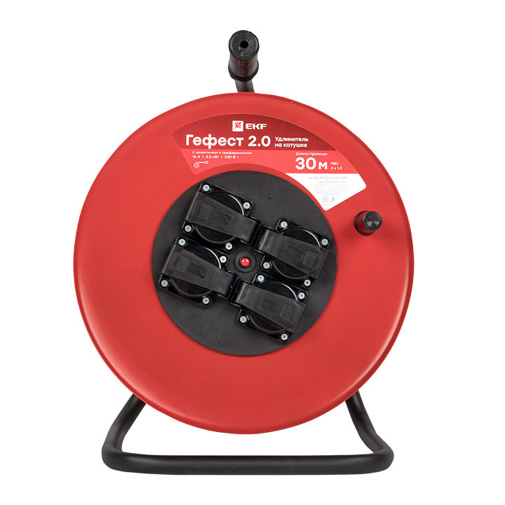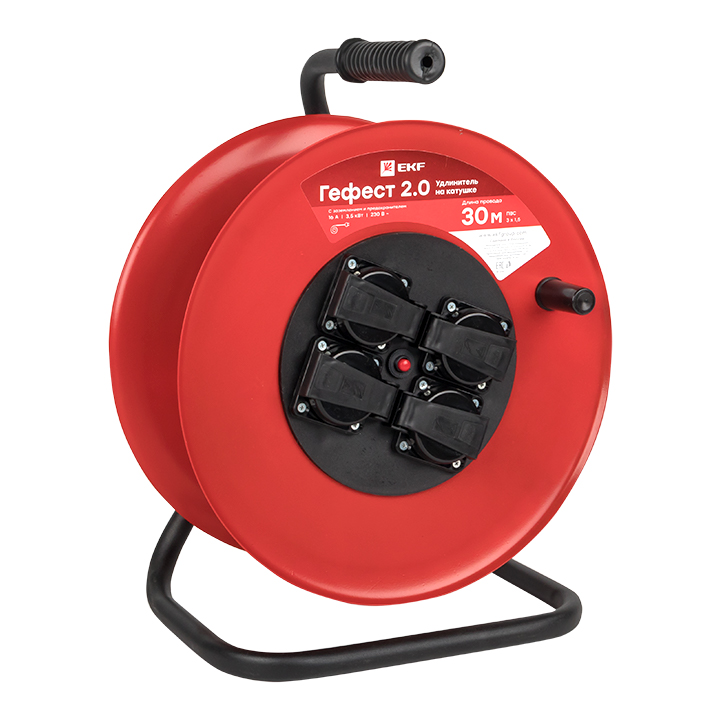 Удлинитель на катушке "Гефест 2,0" 4 гнезда 30м с заземлением и предохранителем ПВС 3*1,5 16А/3,5кВт IP44 PROxima EKF доступен в интернет‑магазине ВольтМаркет. Покупая у нас, вы получаете дополнительные преимущества: