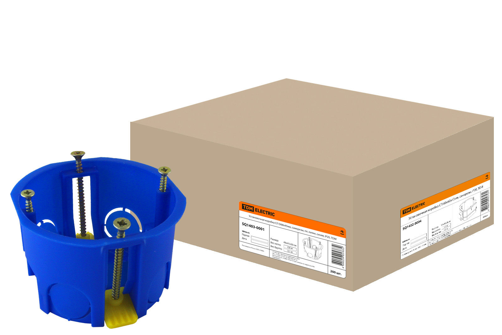 Установочная коробка СП D68х45мм, саморезы, пл. лапки, синяя, IP20, TDM