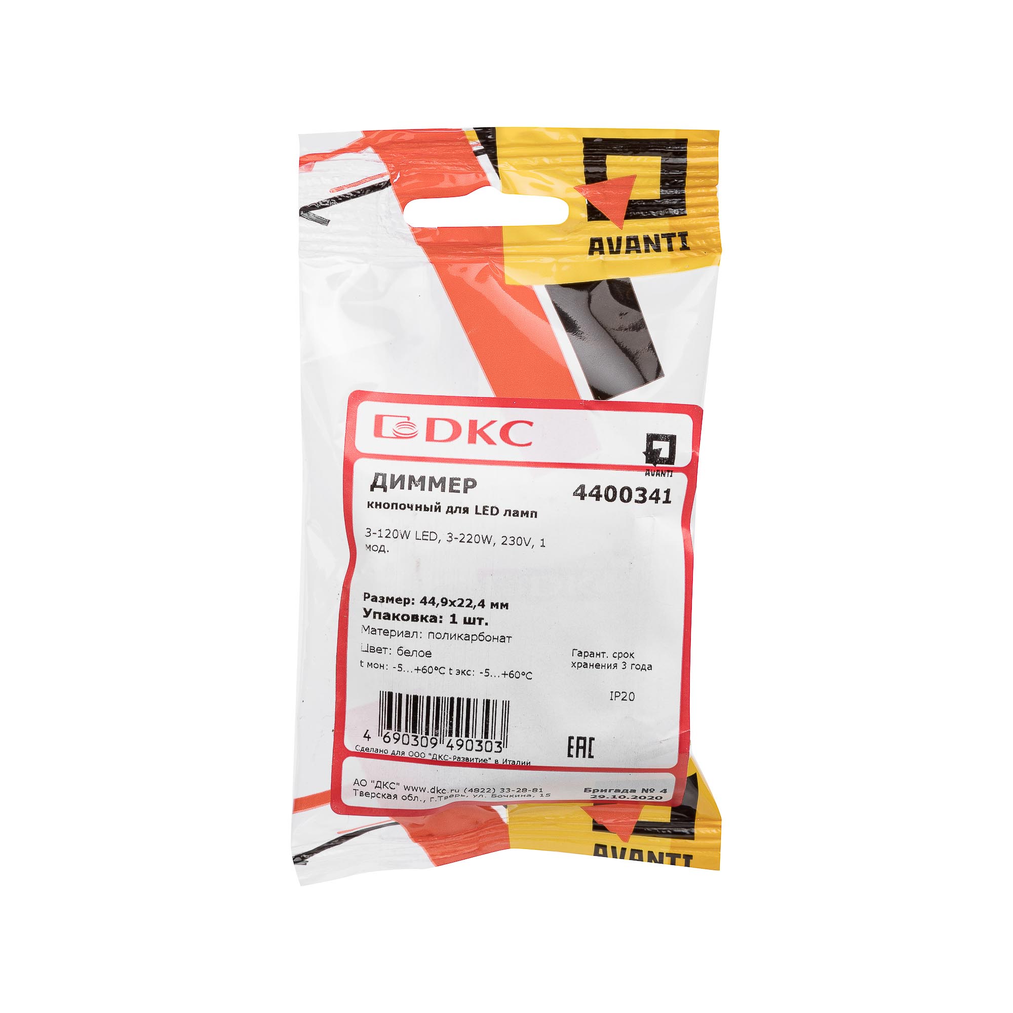 Диммер кнопочный модульный для LED ламп, "Avanti", "Белое облако", 1 модуль DKC