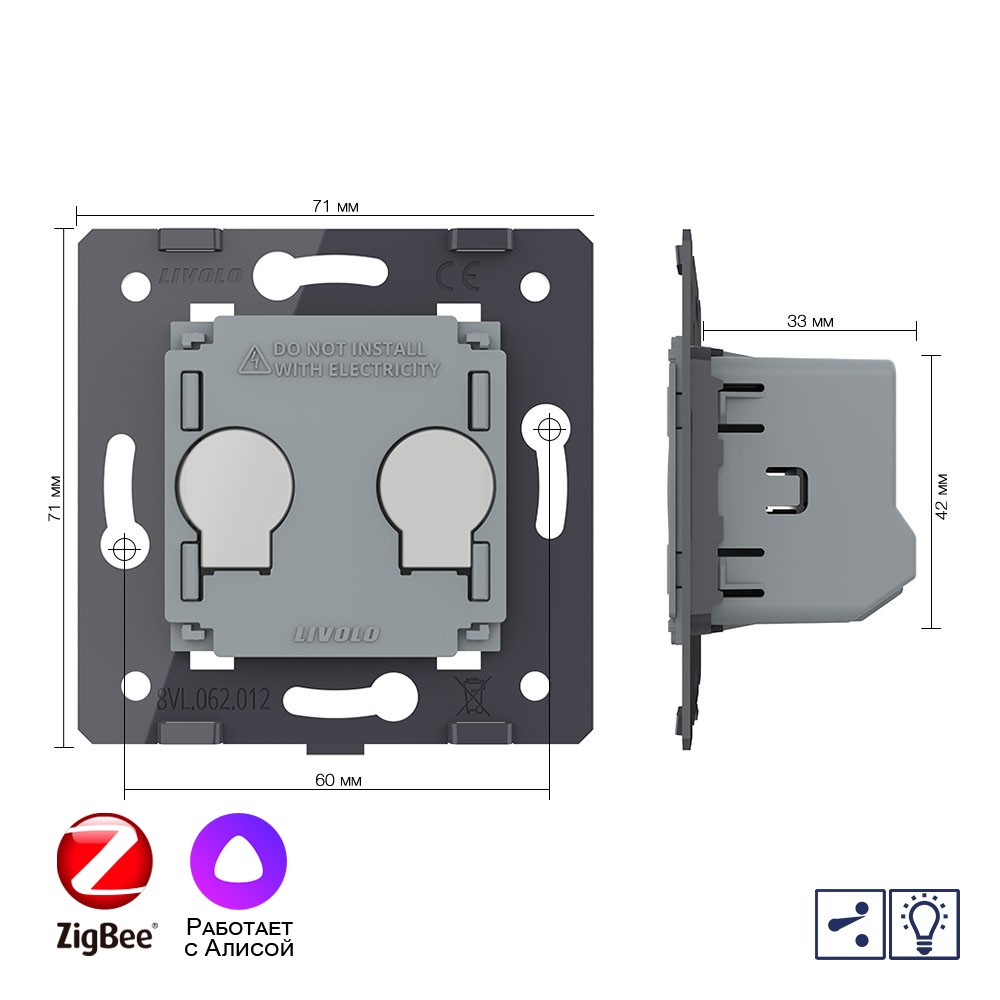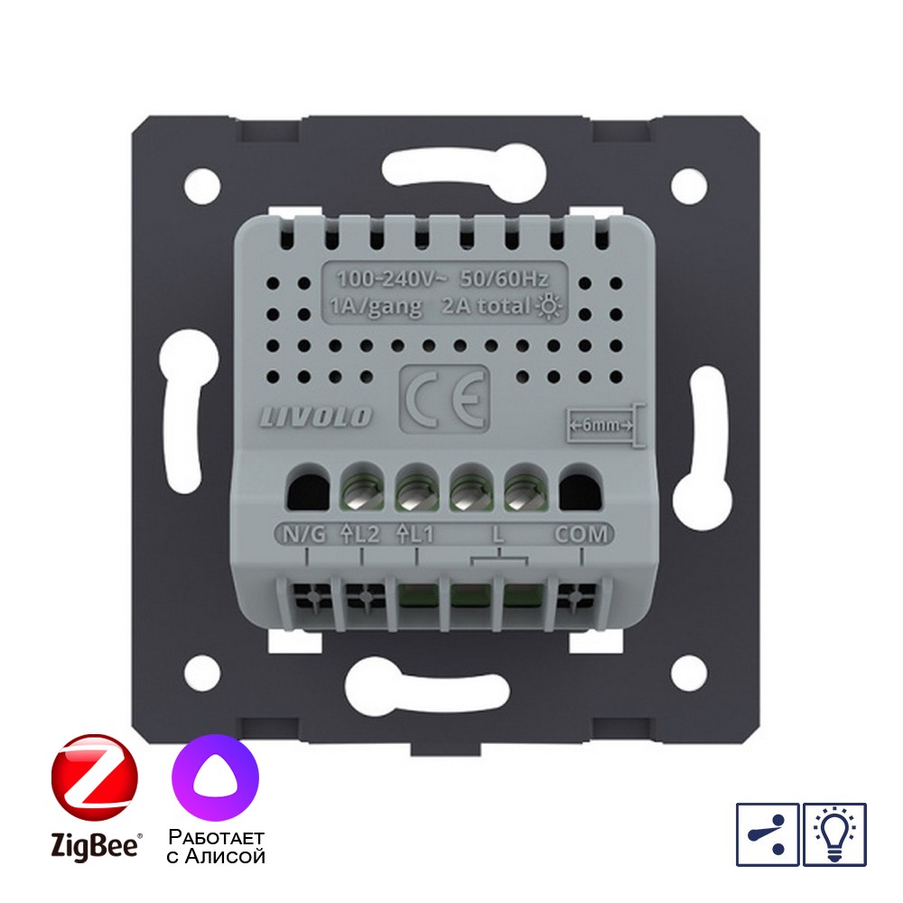 Двухклавишный проходной сенсорный диммер ZigBee (механизм) Livolo доступен в интернет‑магазине ВольтМаркет. Покупая у нас, вы получаете дополнительные преимущества: